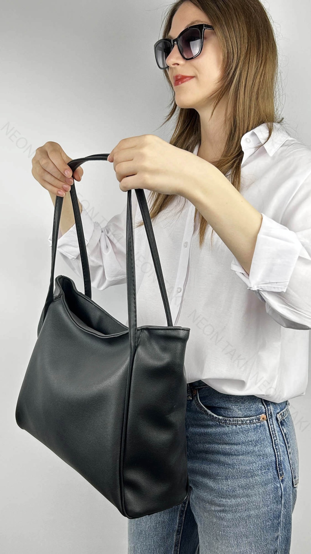 Çift Saplı Yumuşak Deri Omuz ve El Çantası Siyah, 70
