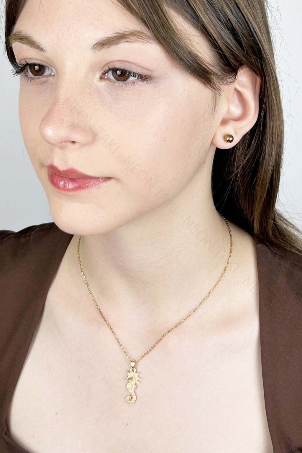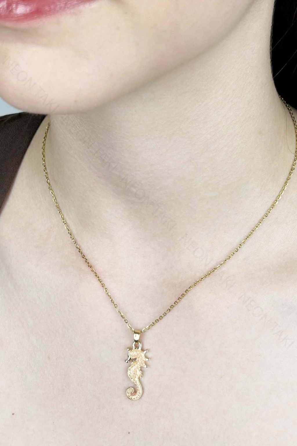 Deniz Atı Figürlü, Paslanmaz Çelik Kolye 412, Altın Rengi