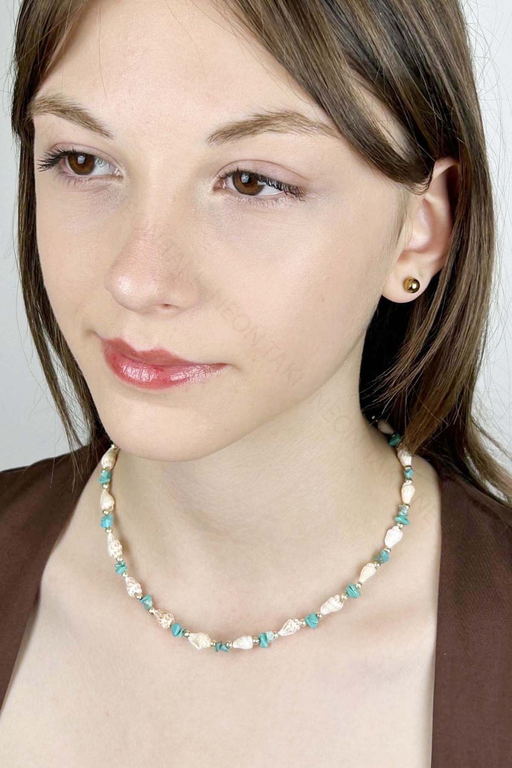 Deniz Kabuğu Kolye 426, Turkuaz - Beyaz