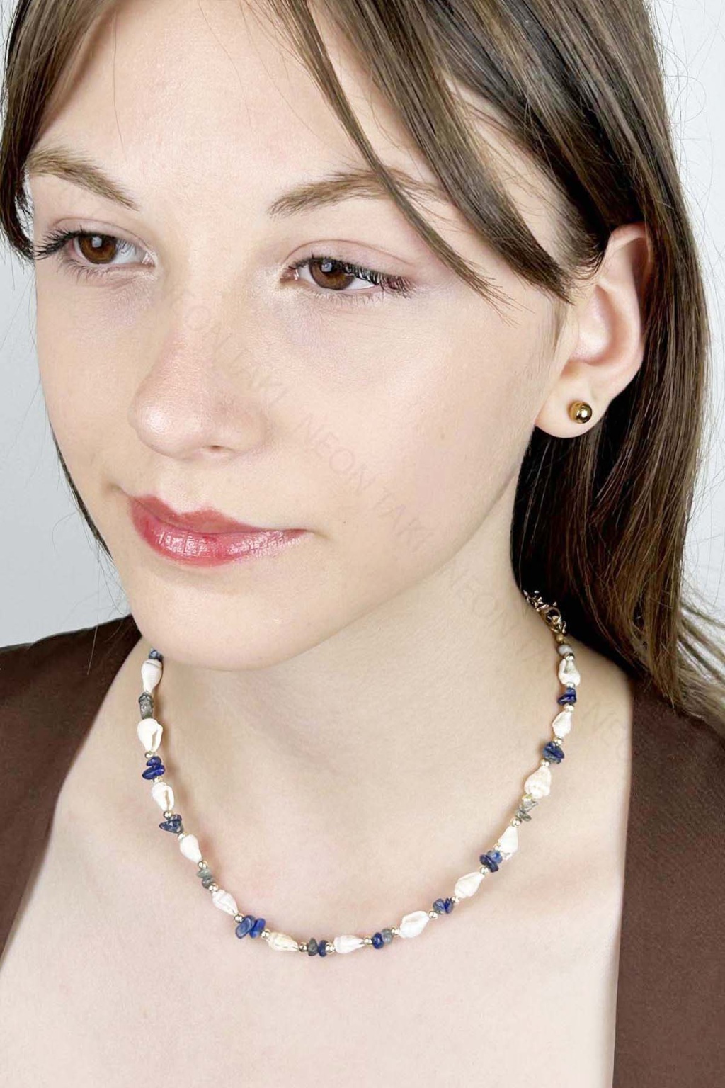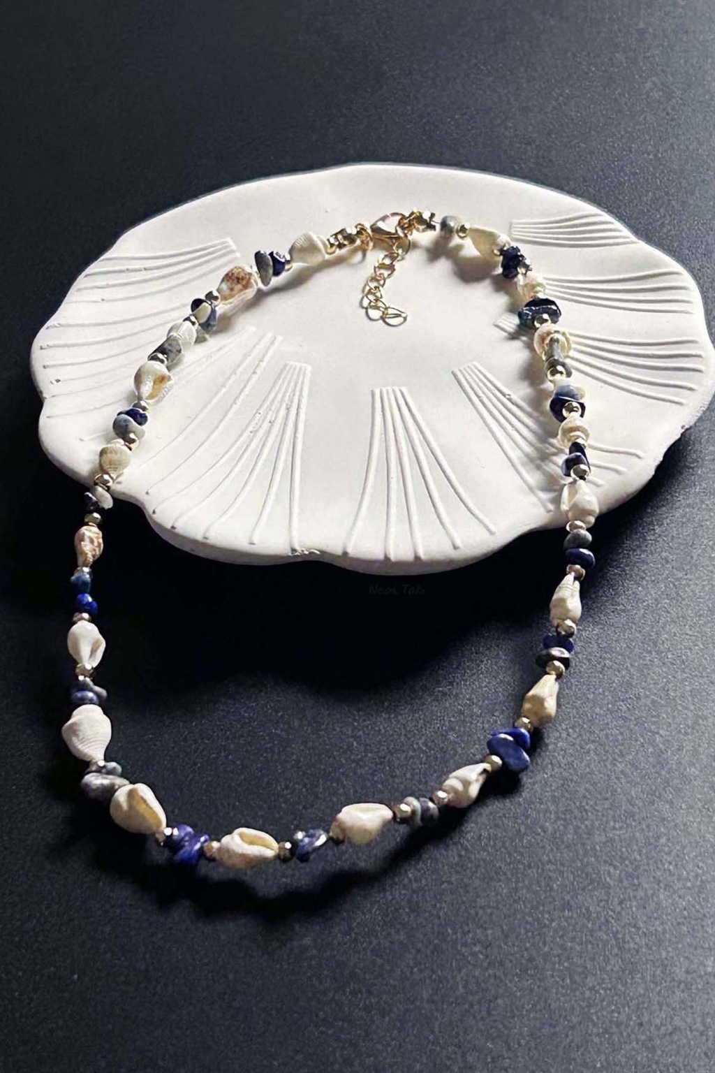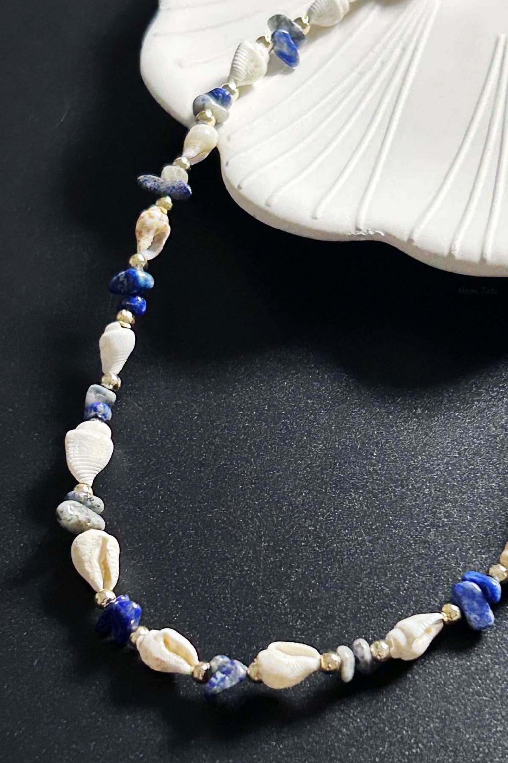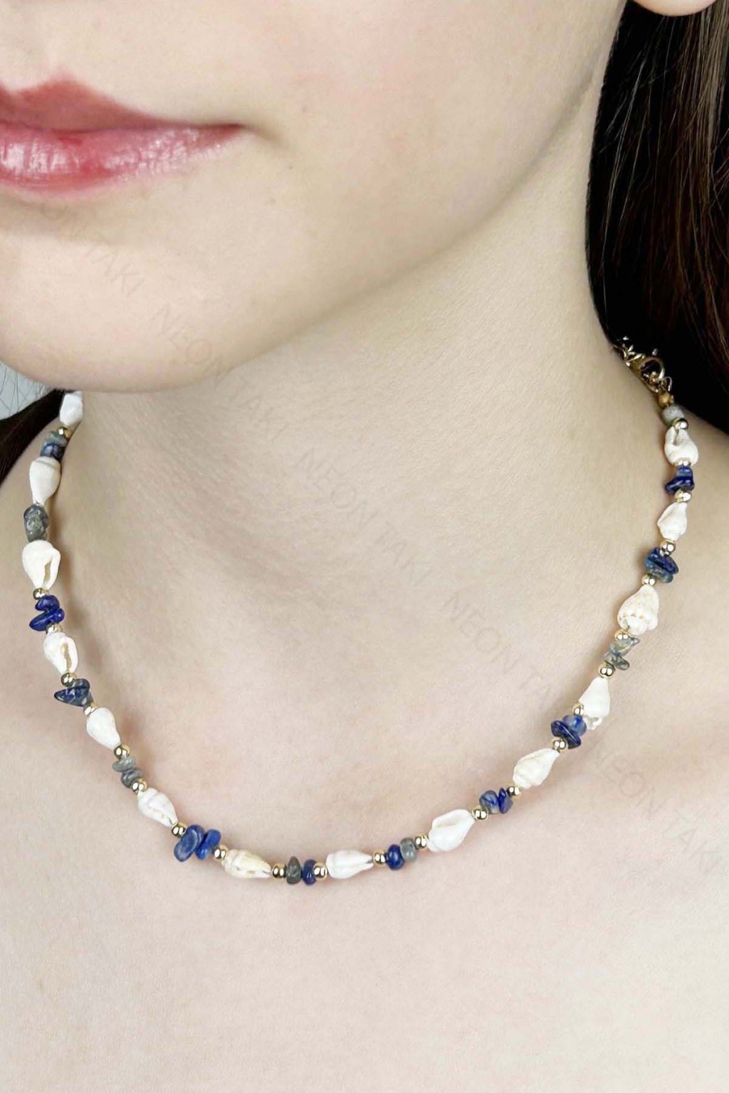 Deniz Kabuğu Kolye 427, Mavi - Beyaz