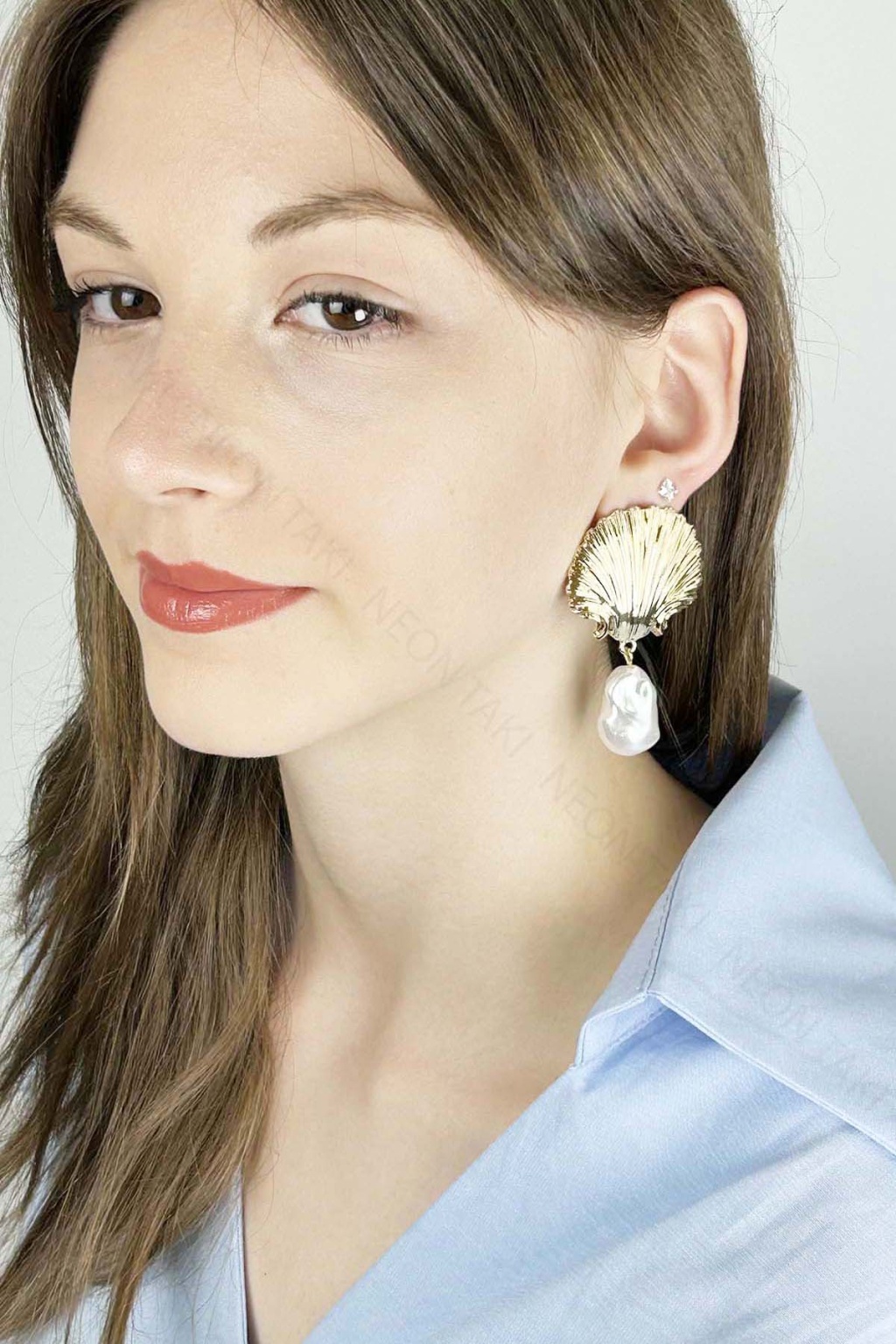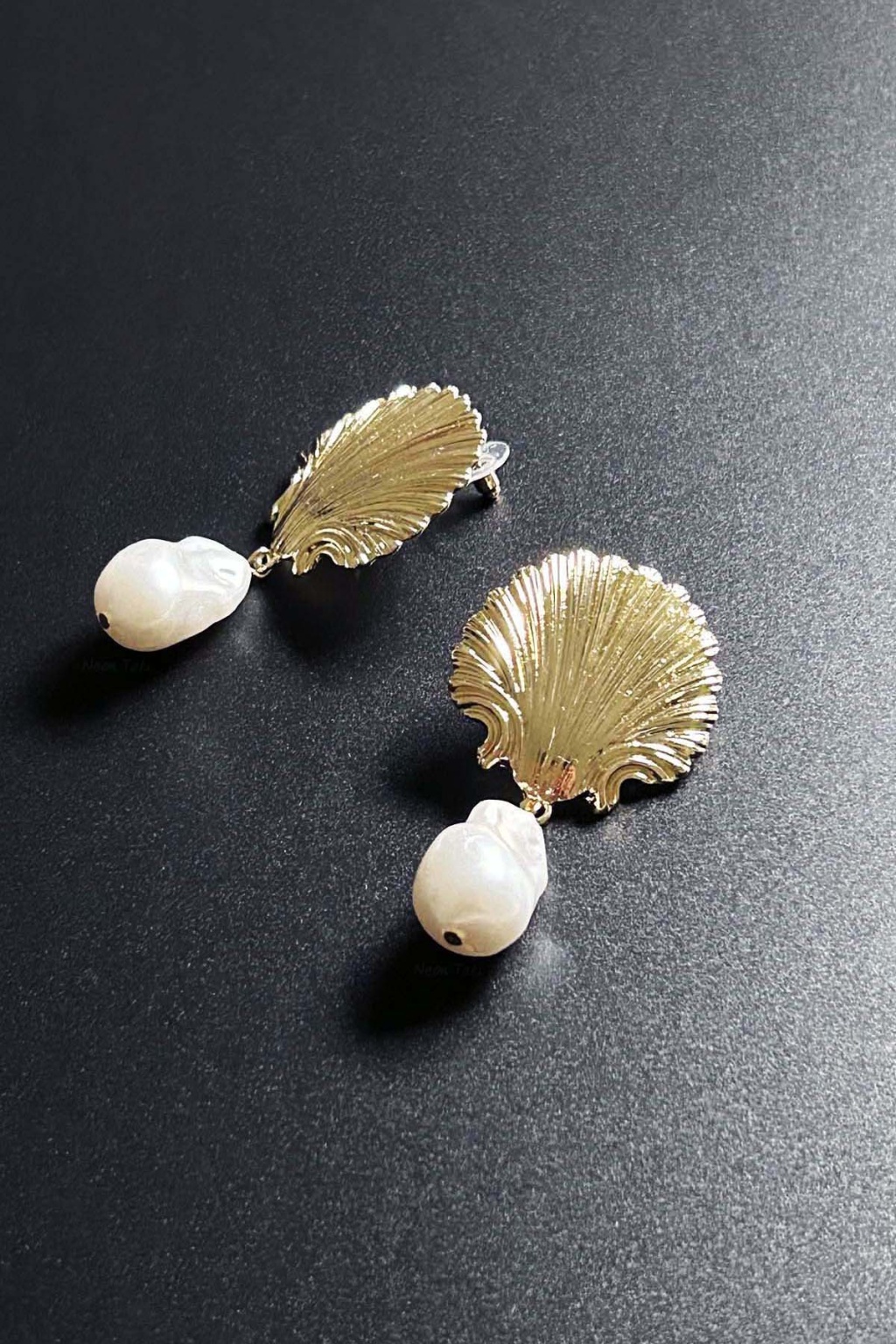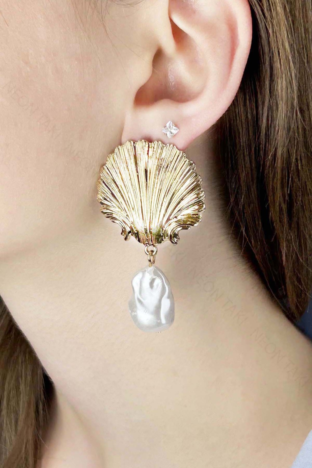 İnci Detaylı, İstiridye Küpe 637, Altın Renk