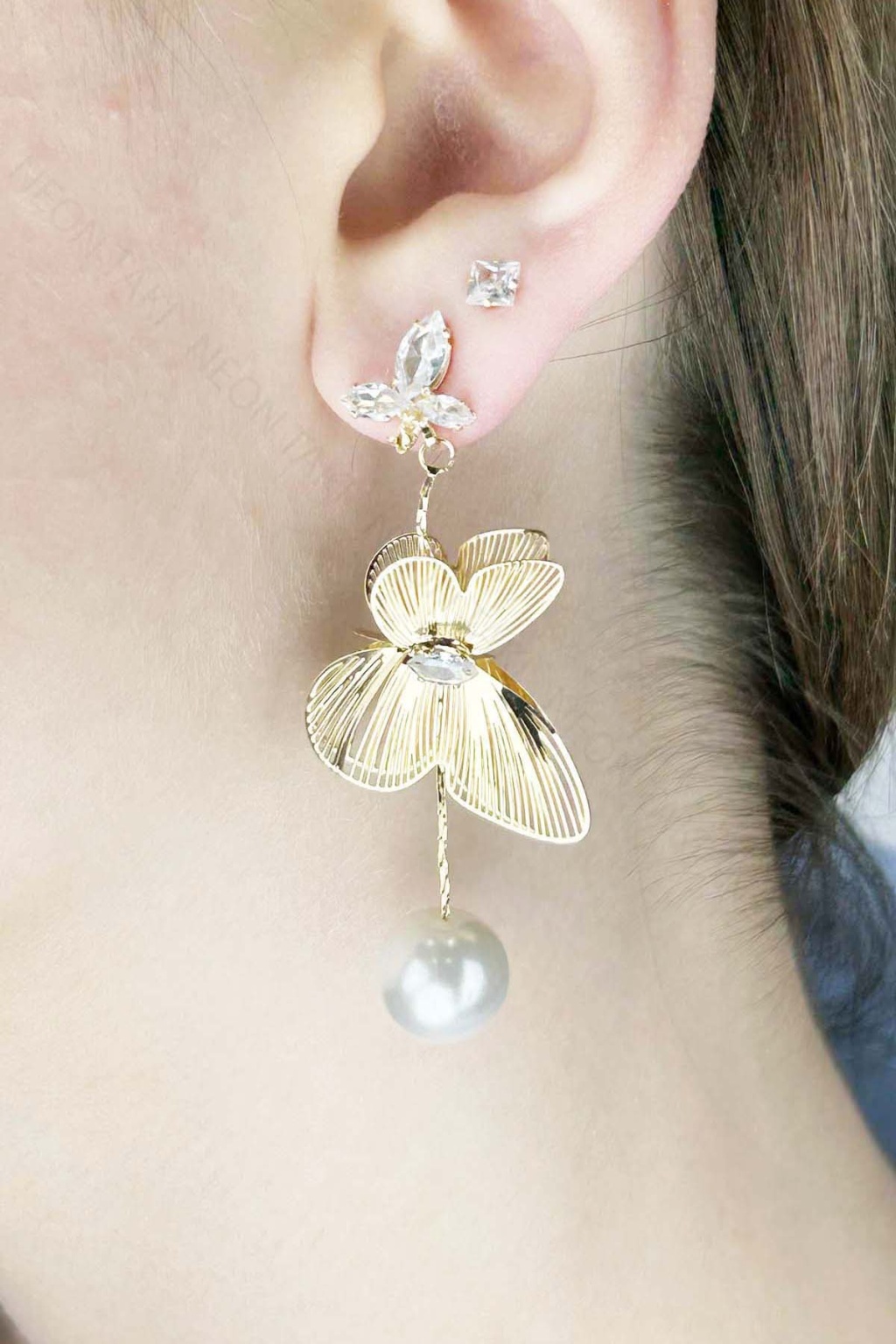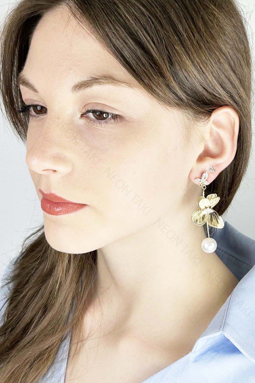 İnci Sallantılı, Çelik Çiçek Küpe 639, Altın Renk