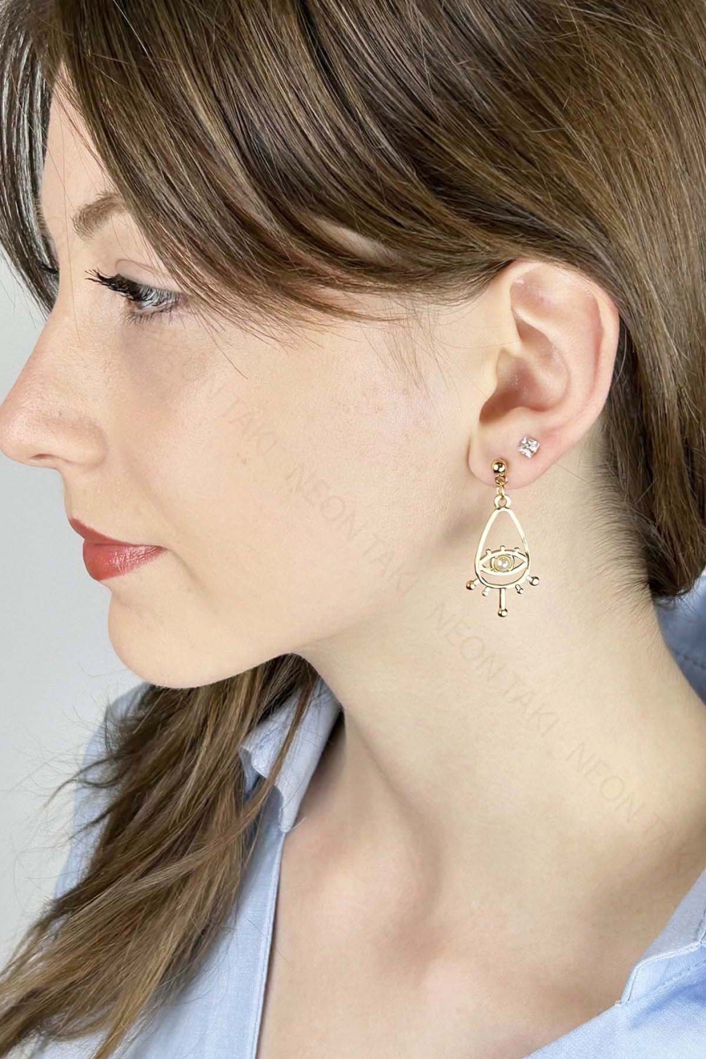 İncili, Göz Figürlü Paslanmaz Çelik Kolye 634, Altın Renk