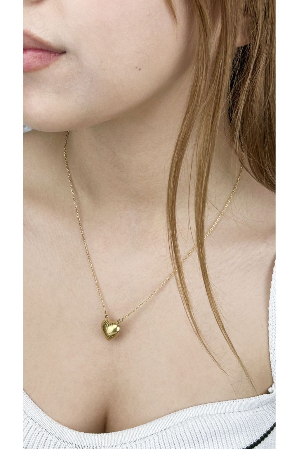 Kolye, Kararmayan Paslanmaz Çelik, Kalp Detaylı, Altın Renk, Model34
