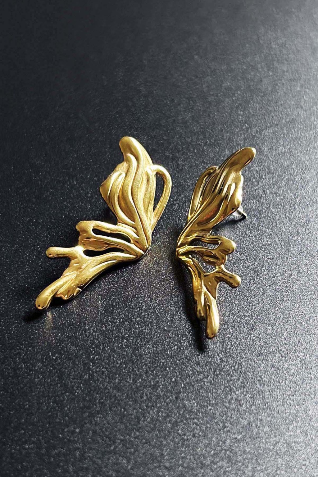 Kelebek Formunda Paslanmaz Çelik Küpe 645, Altın Renk