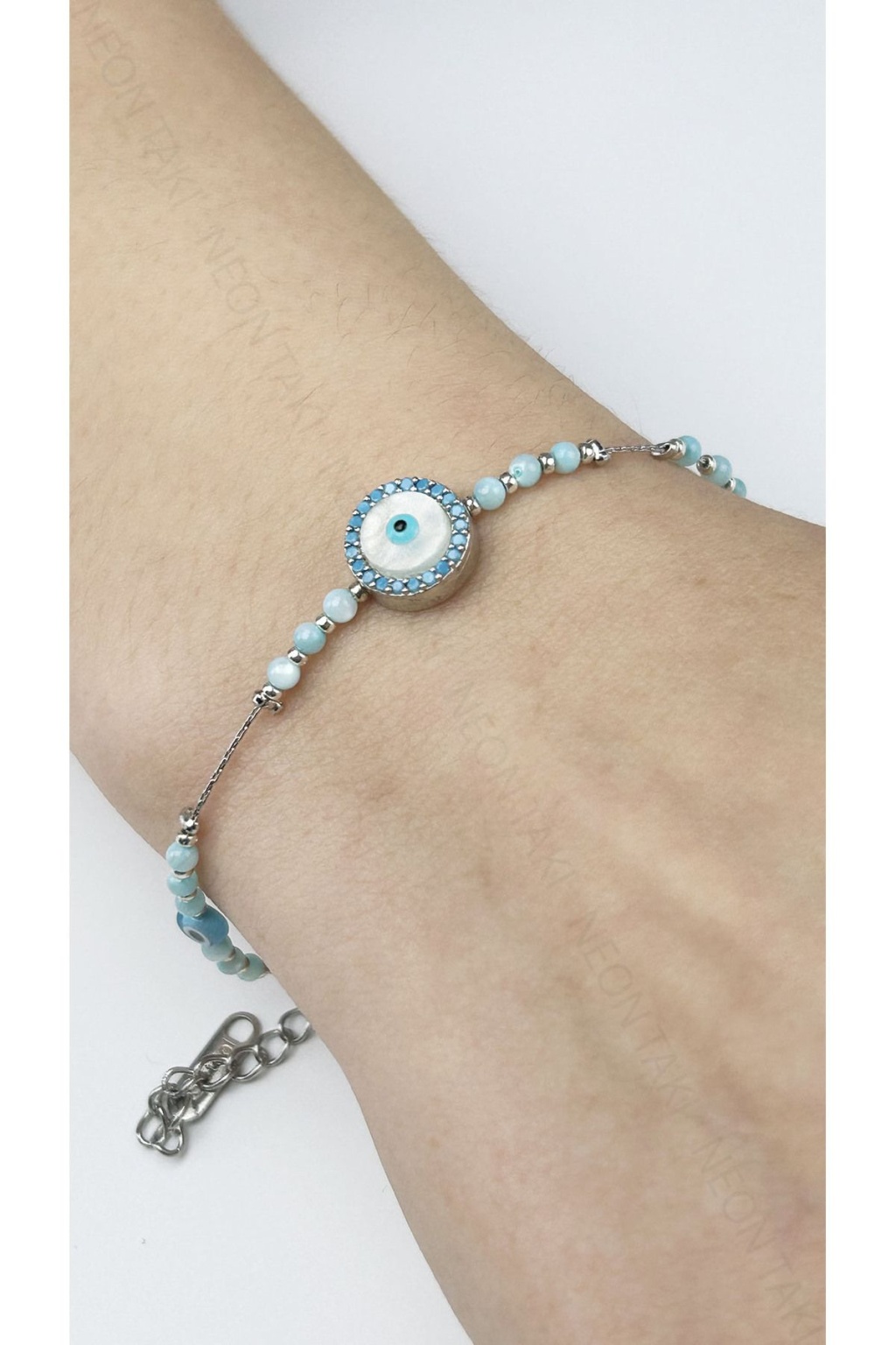 Bileklik, Zirkon Taşlı, Kararmayan Paslanmaz Çelik, Nazar Detaylı, Gümüş Renk, Model491