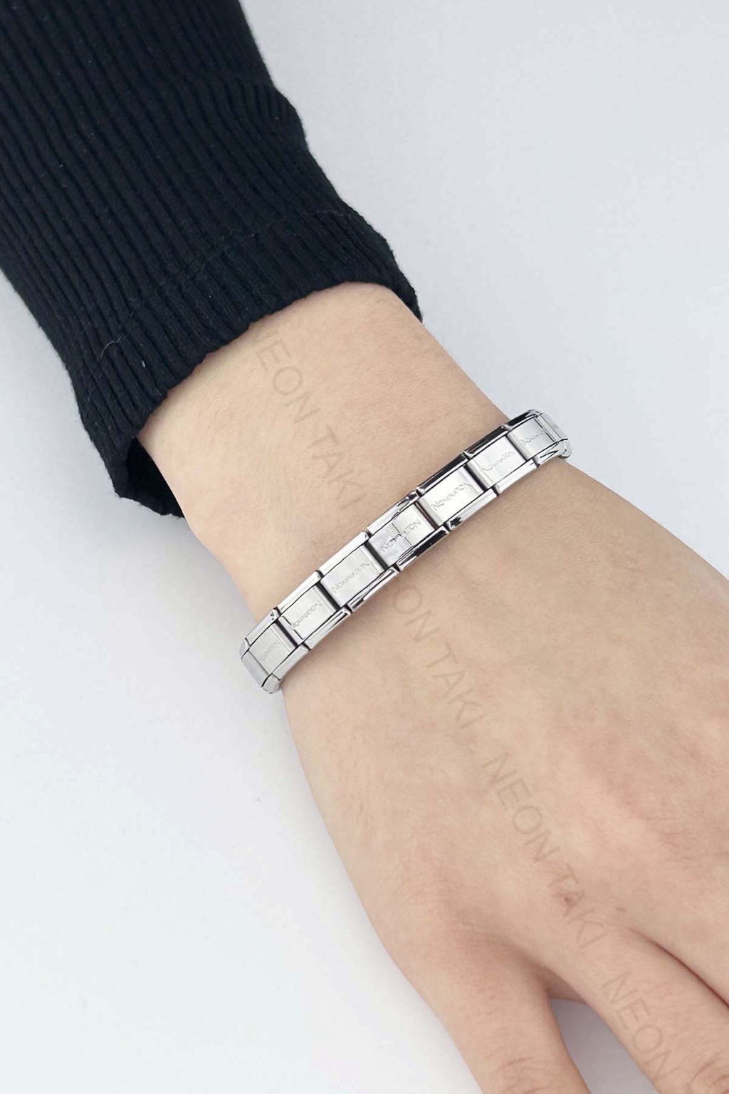 Paslanmaz Çelik Charm Taşıyıcı Italyan Nom Bileklik 83, Gümüş Renk
