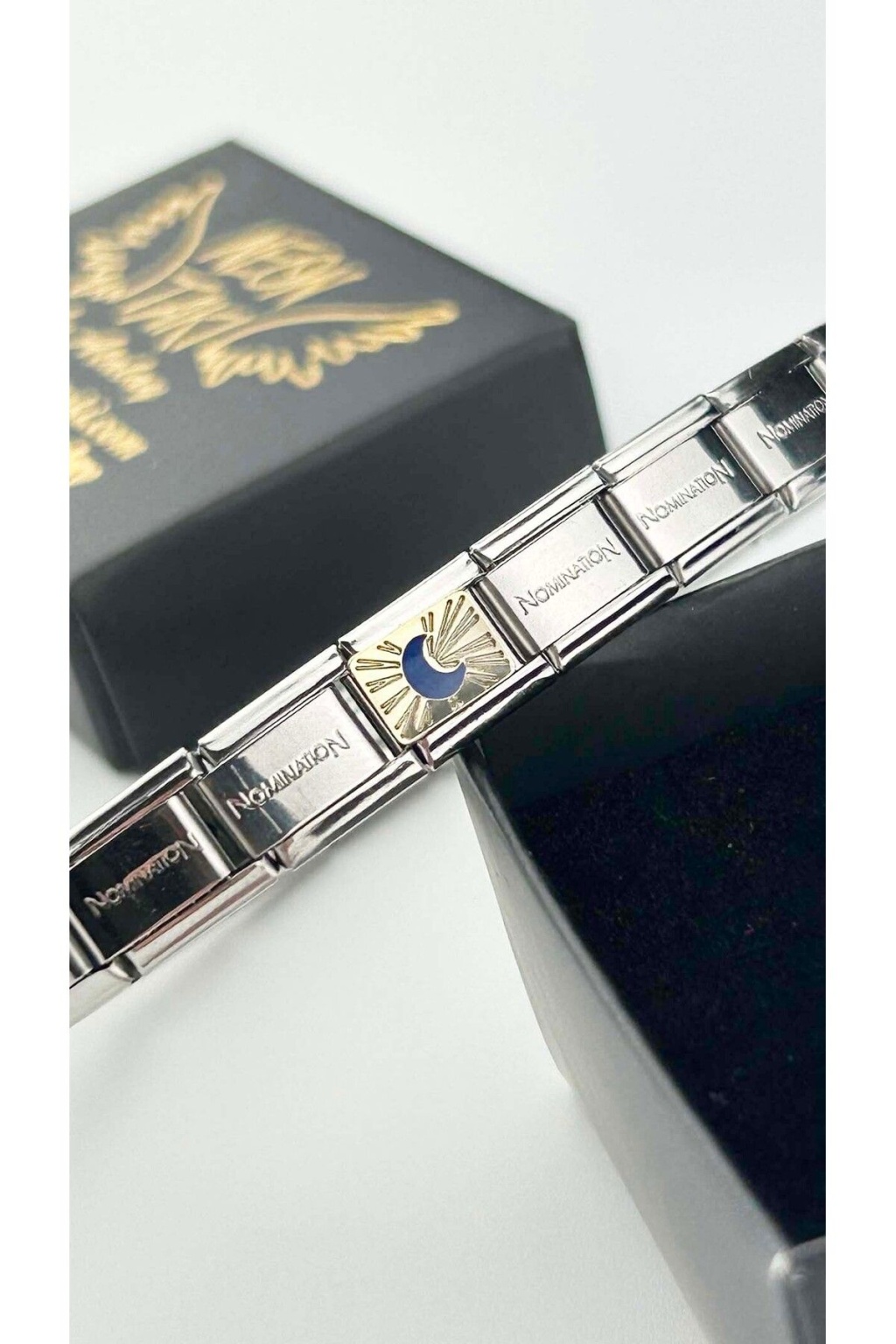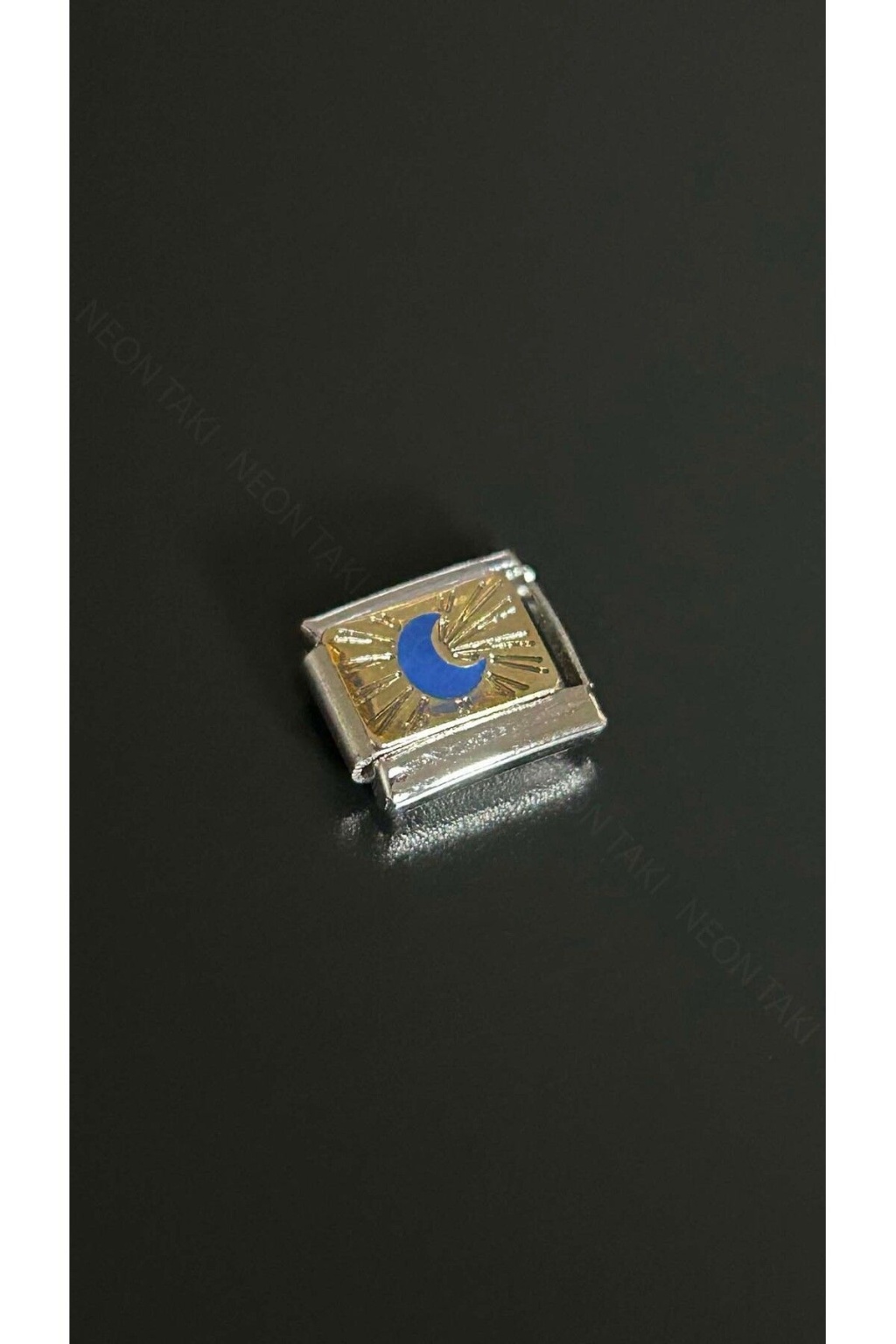 Charm, İtalyan Bileklik için, Kararmayan, Sarı Fonda Mavi Ay, BİLEKLİK DAHİL DEĞİL, Gümüş Renk,