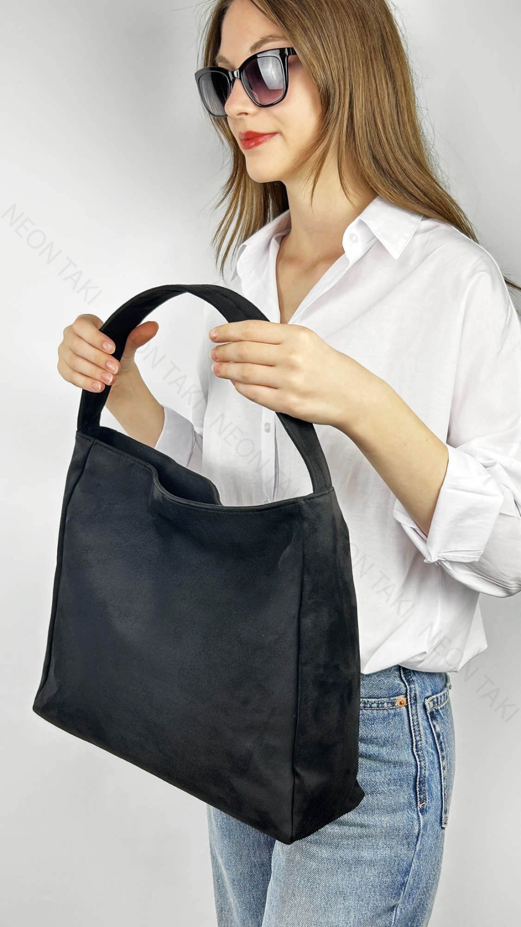 Salaş Süet Omuz Çantası, Çanta 76, Siyah Renk