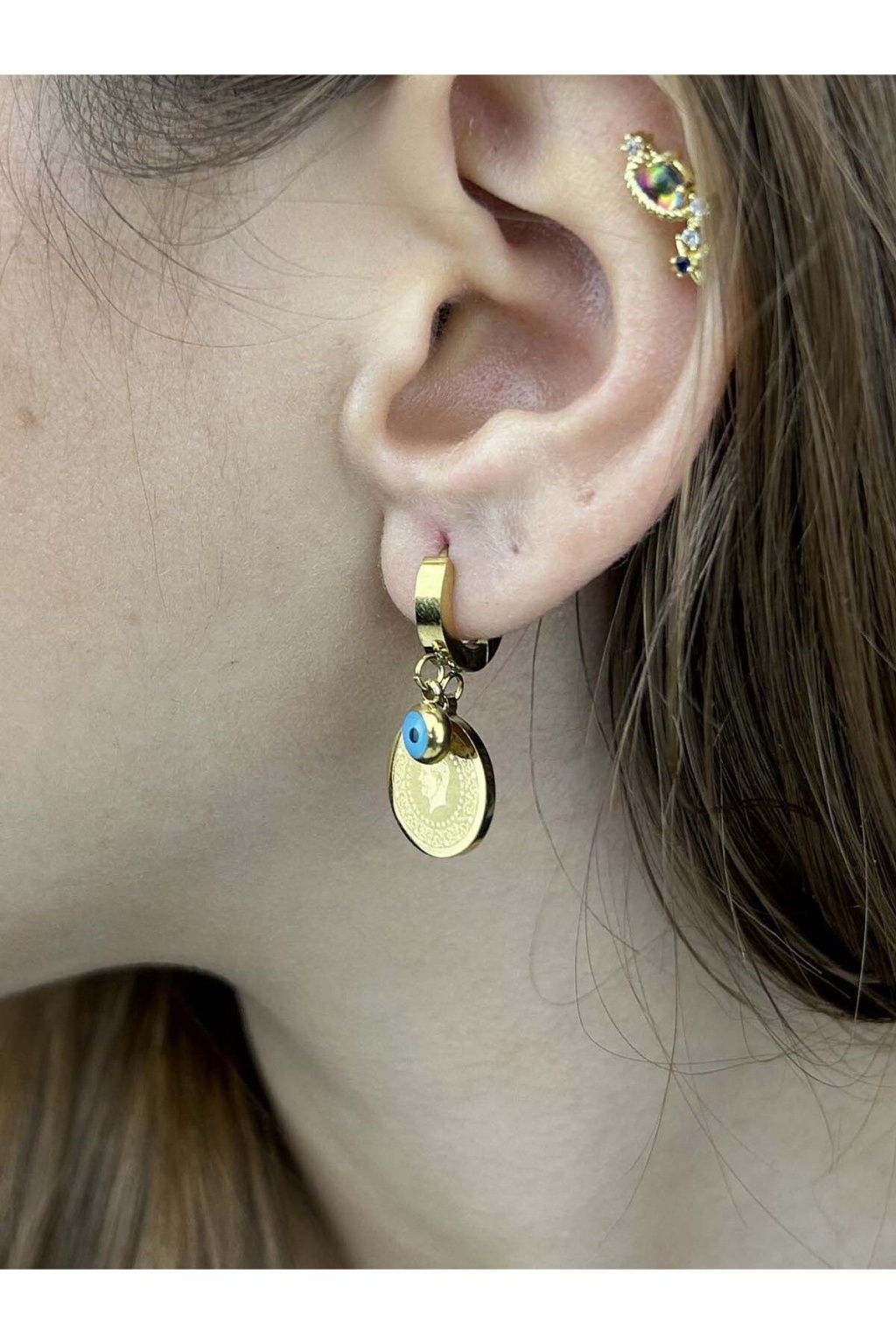 Küpe, Kararmayan Paslanmaz Çelik, Göz Detaylı, Reşatlı Ata Model, Altın Renk, Model82