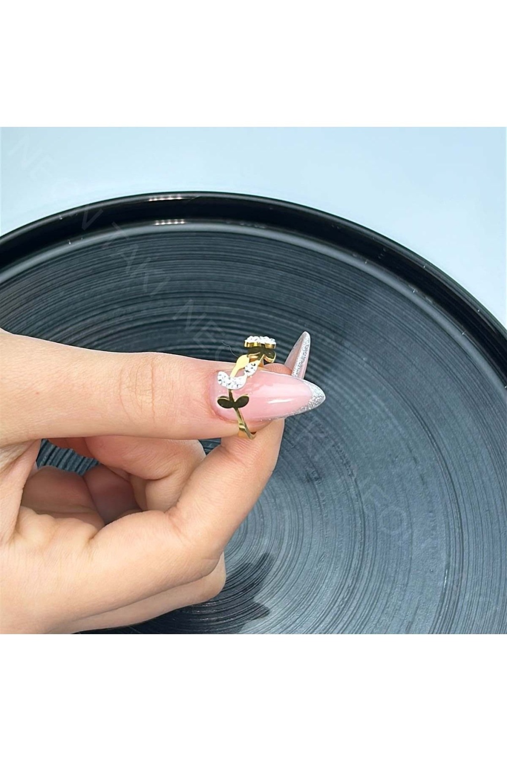 Xxx Gül Figürlü, Zirkon Taşlı Yüzük 53, Altın Renk, Ayarlanabilir