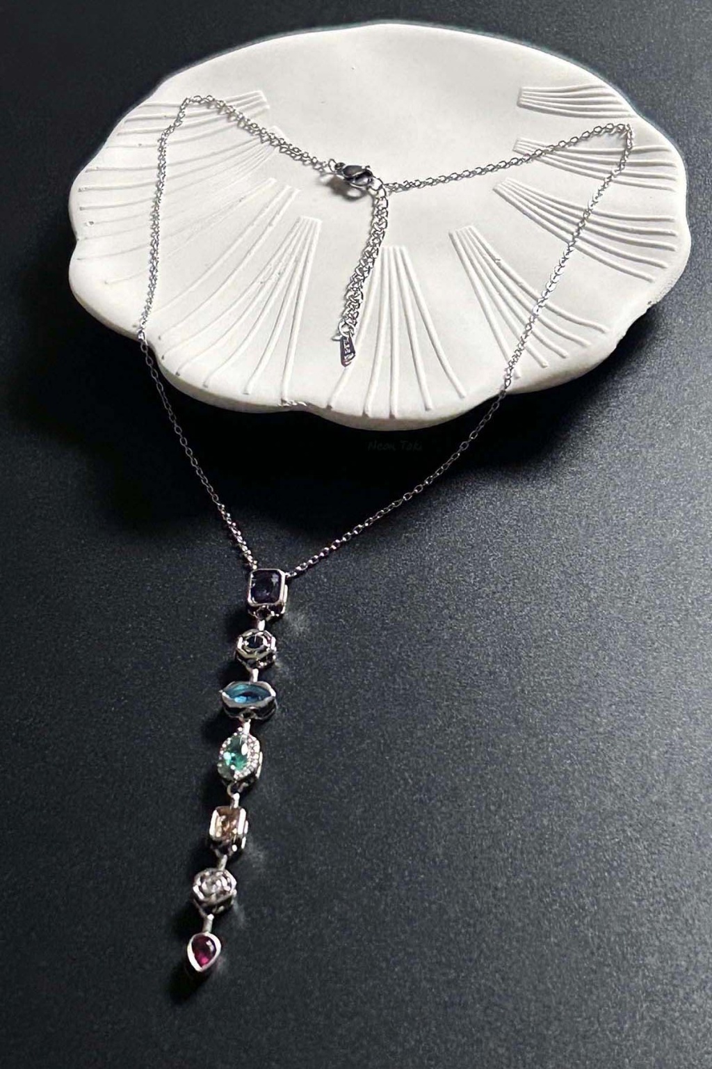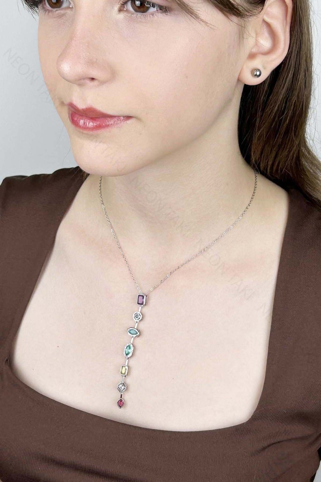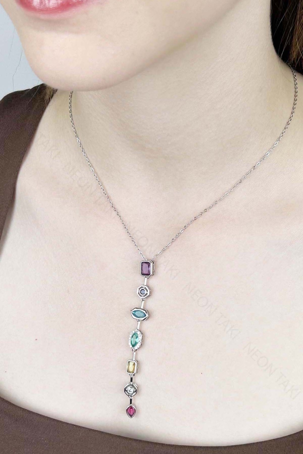 Y kolye, Çok Renkli, Paslanmaz Çelik 406, Kasa Gümüş Renk