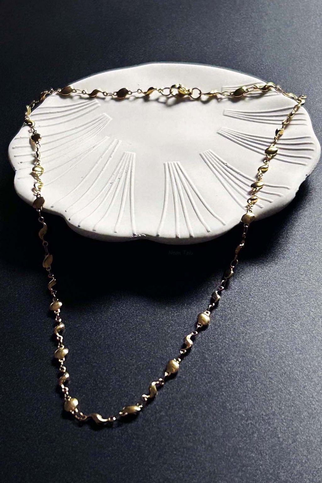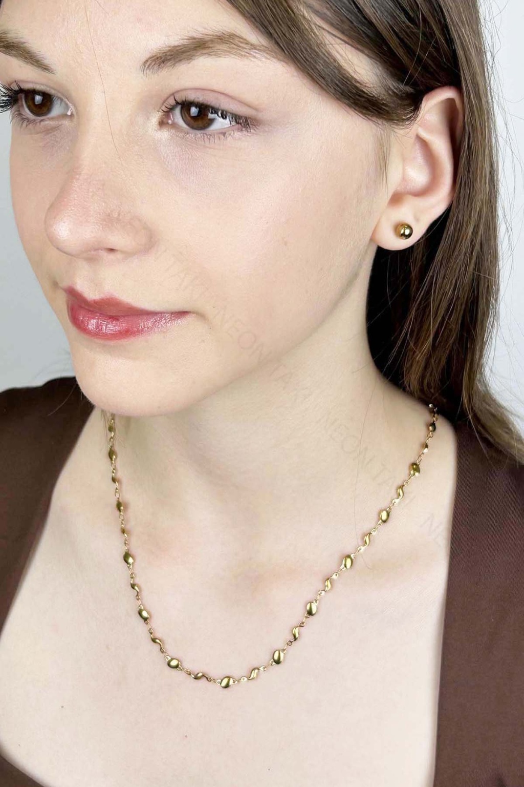 İncili, İstiridye Paslanmaz Çelik Kolye 410, Altın Renk