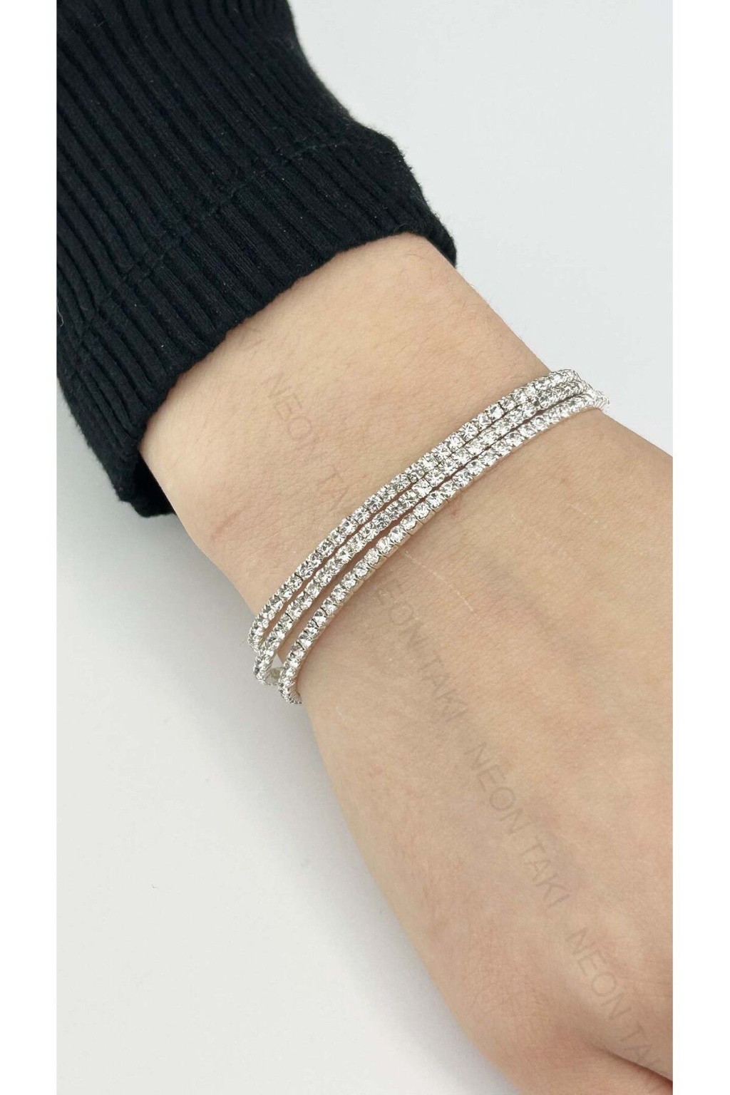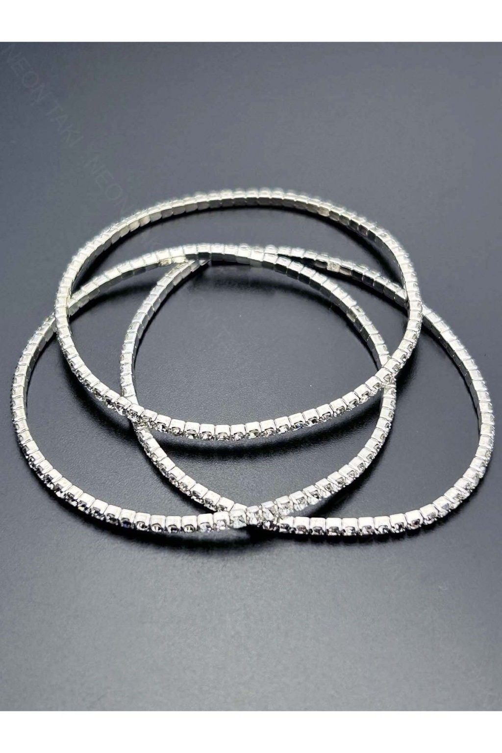 Zirkon Taşlı, 3lü Lastikli Bileklik 167, Silver Renk