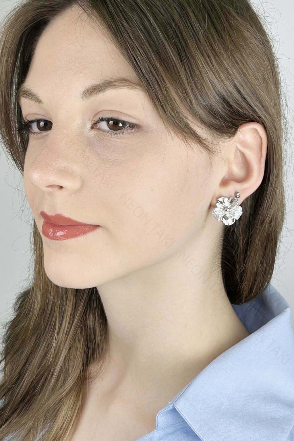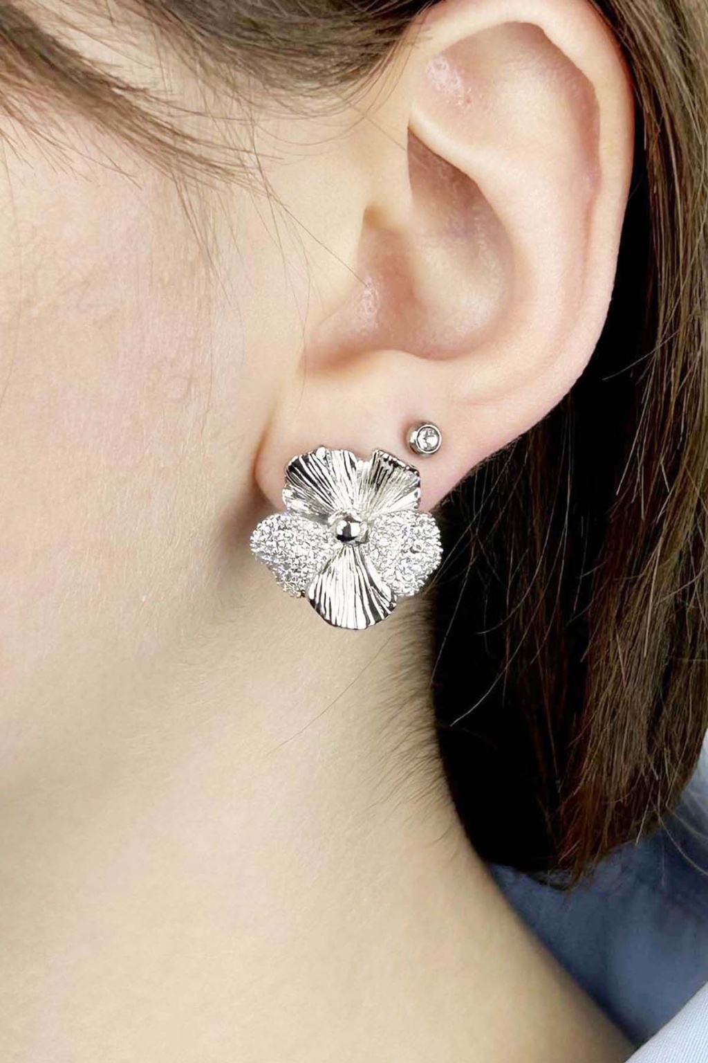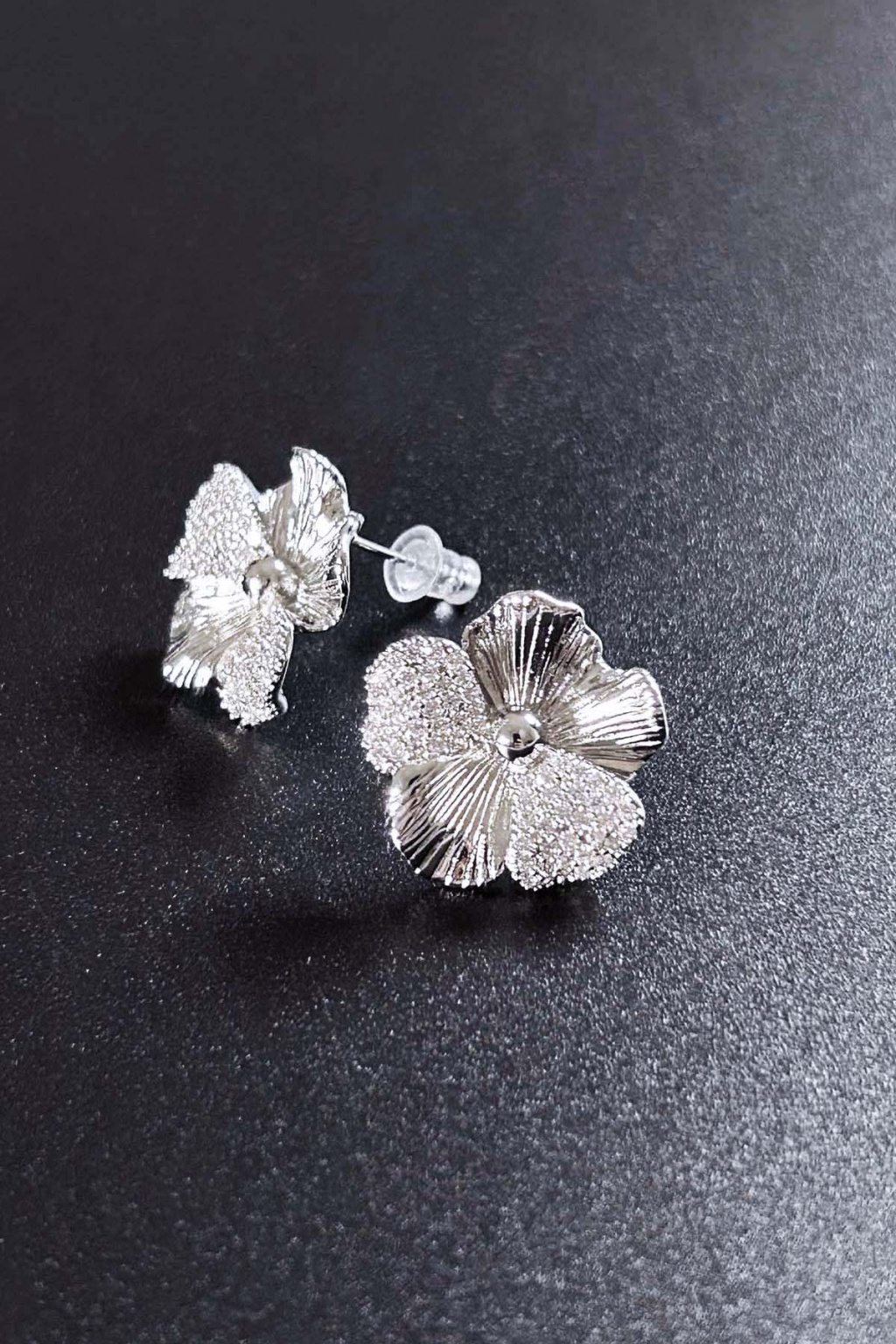 Zirkon Taşlı, İğnesi Gümüş Çiçek Formunda Küpe 642, Gümüş Renk