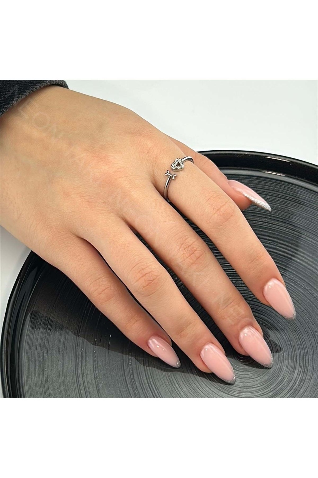 Zirkon Taşlı, Kalp, Bijuteri Eklem Yüzüğü 116, Gümüş Renk, Ayarlanabilir