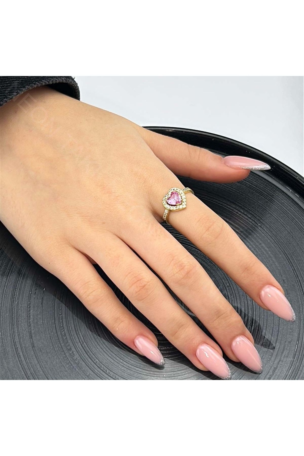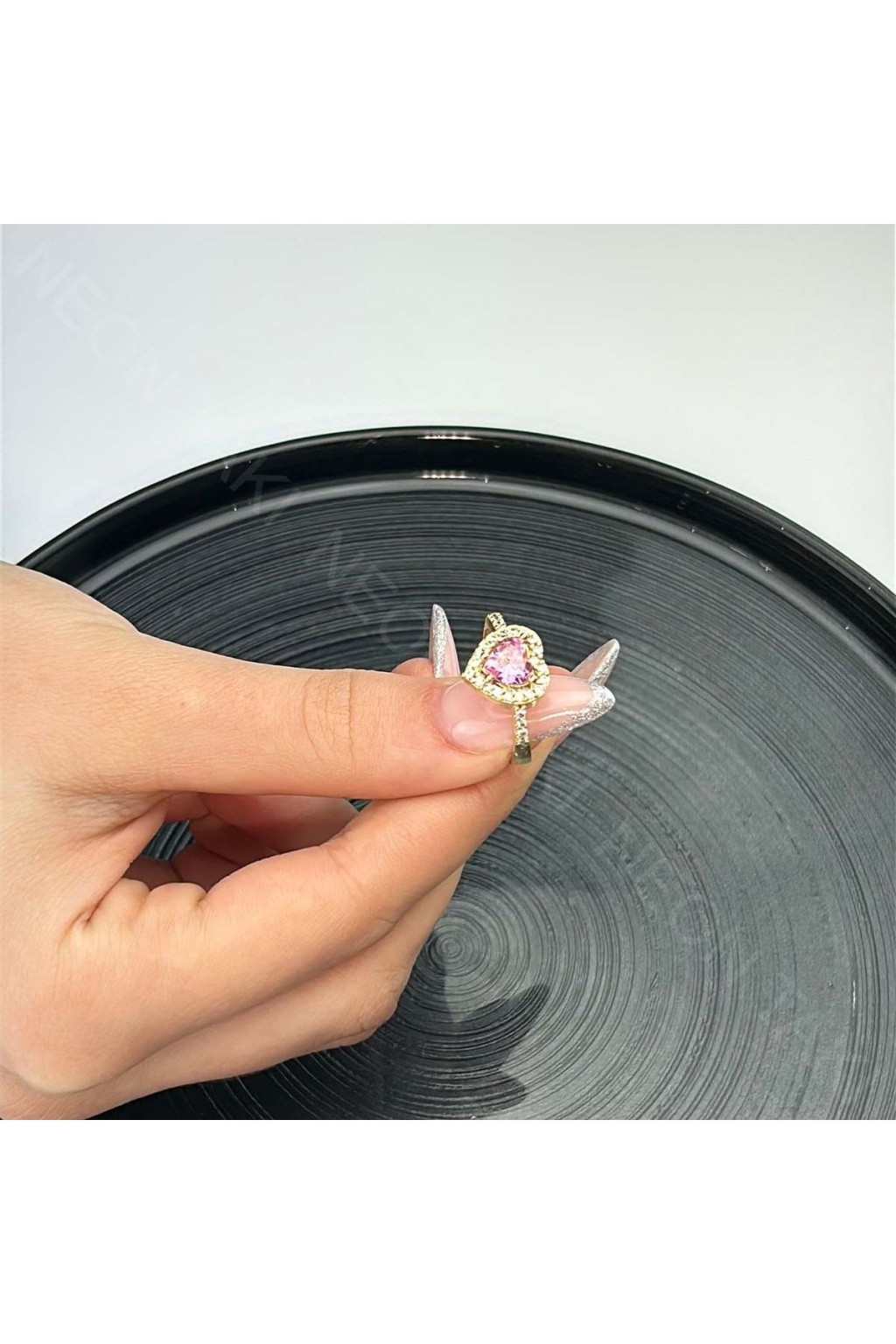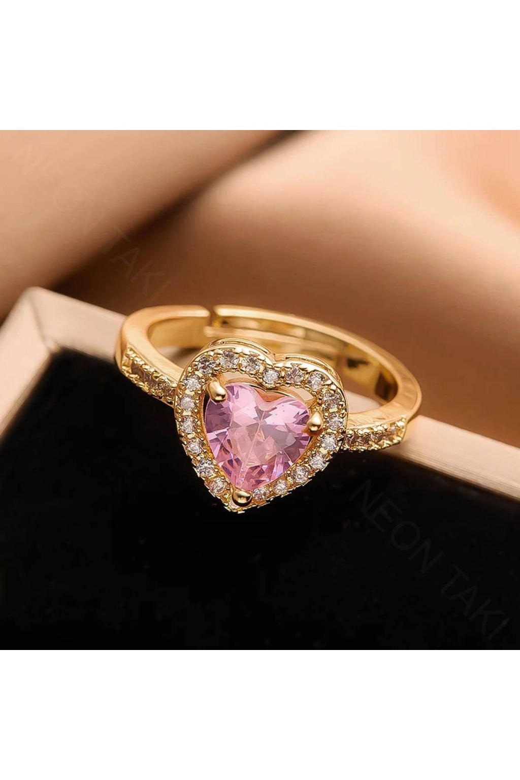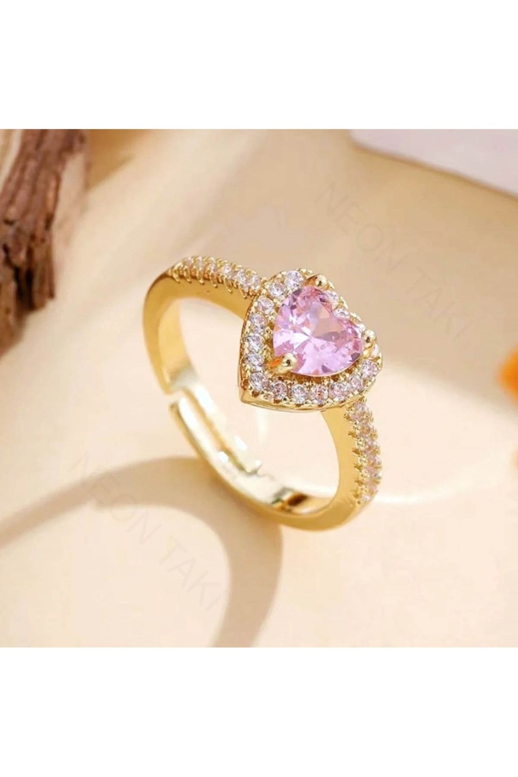 Zirkon Taşlı, Kalp Figürlü, Pan Yüzük 1, Kasa Altın Renk, Ayarlanabilir