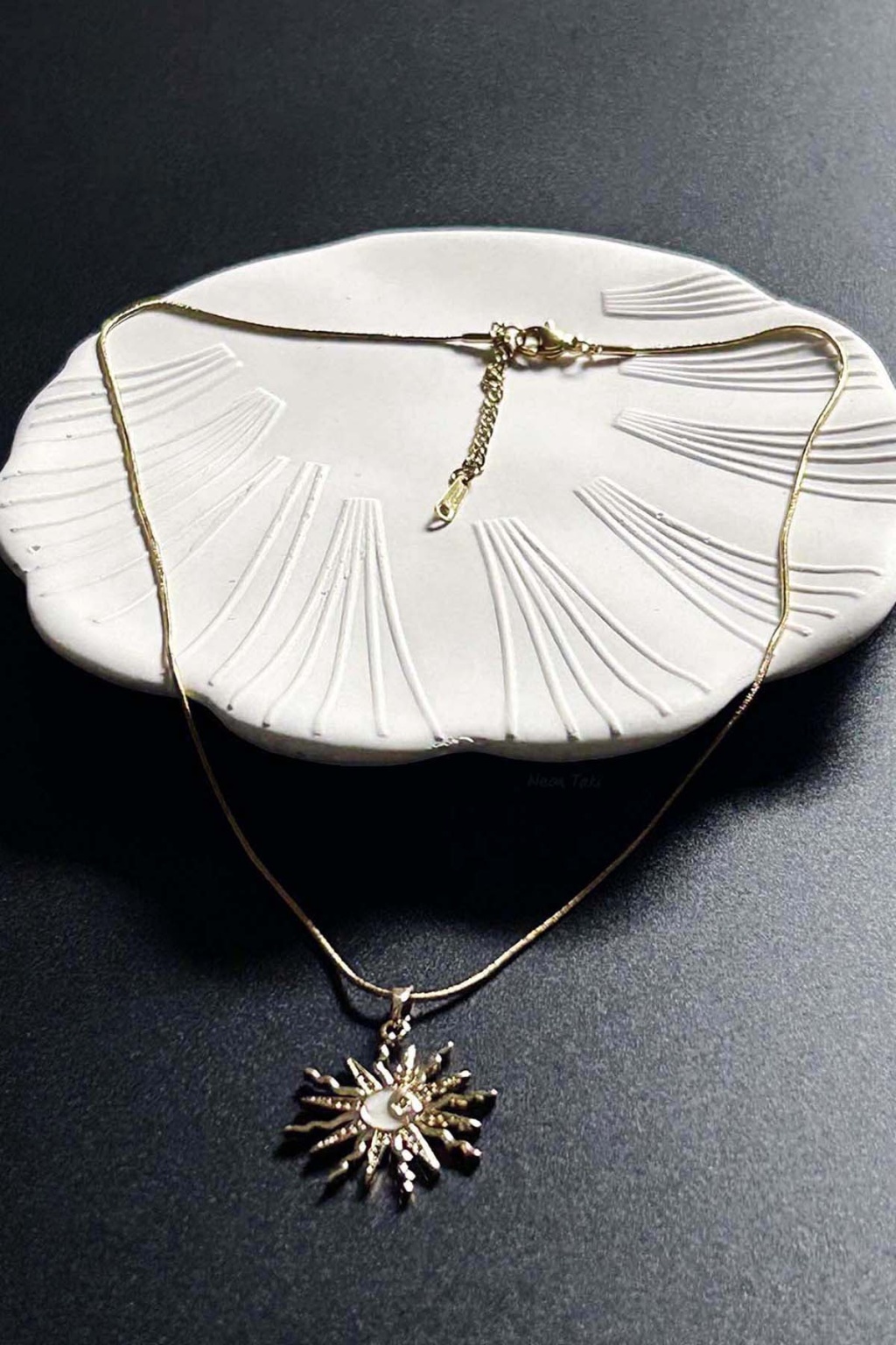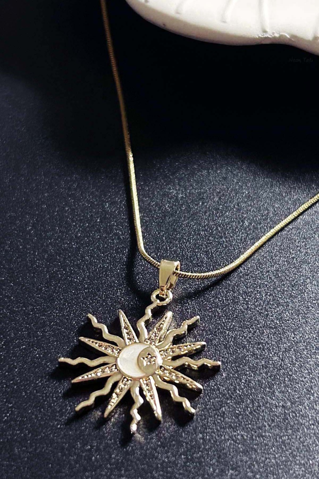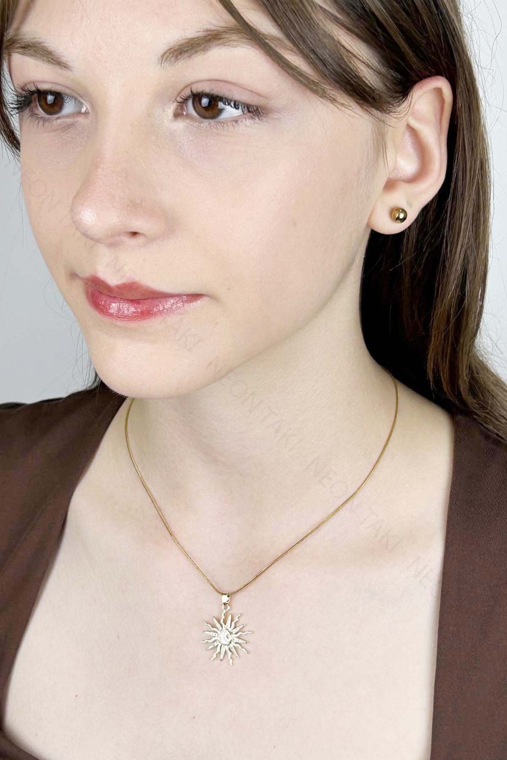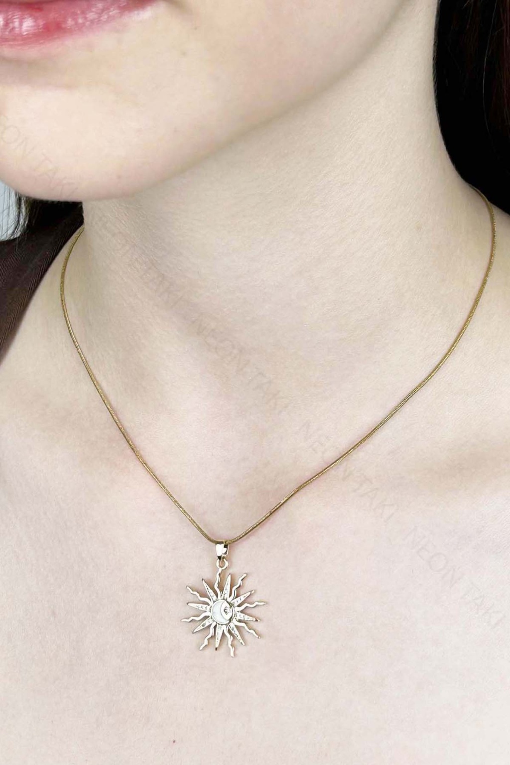 Zirkon Taşlı, Mineli Güneş Figürlü Paslanmaz Çelik Kolye 418, Altın Renk