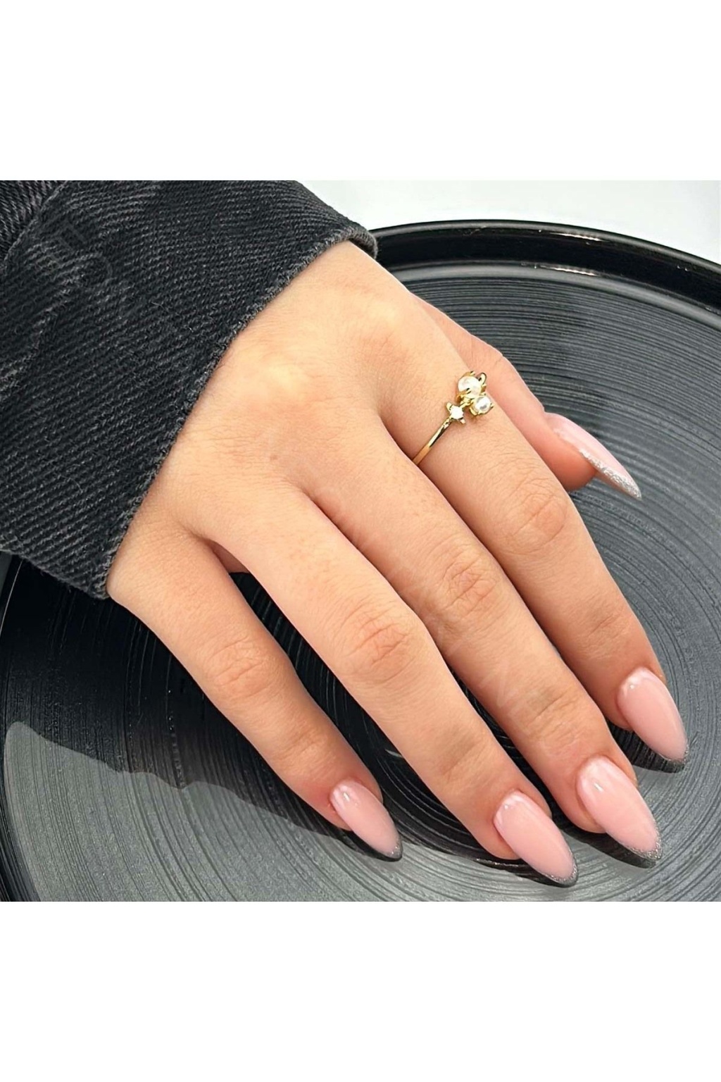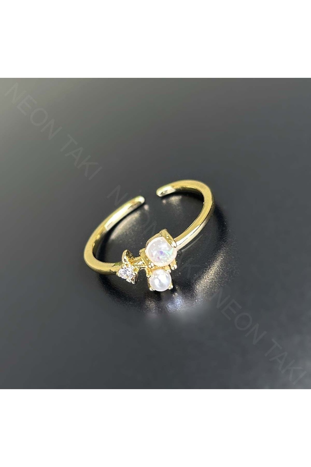 Zirkon Taşlı, Mineli Incili Paslanmaz Yüzük 133 Kasa Altın Renk Ayarlanabilir
