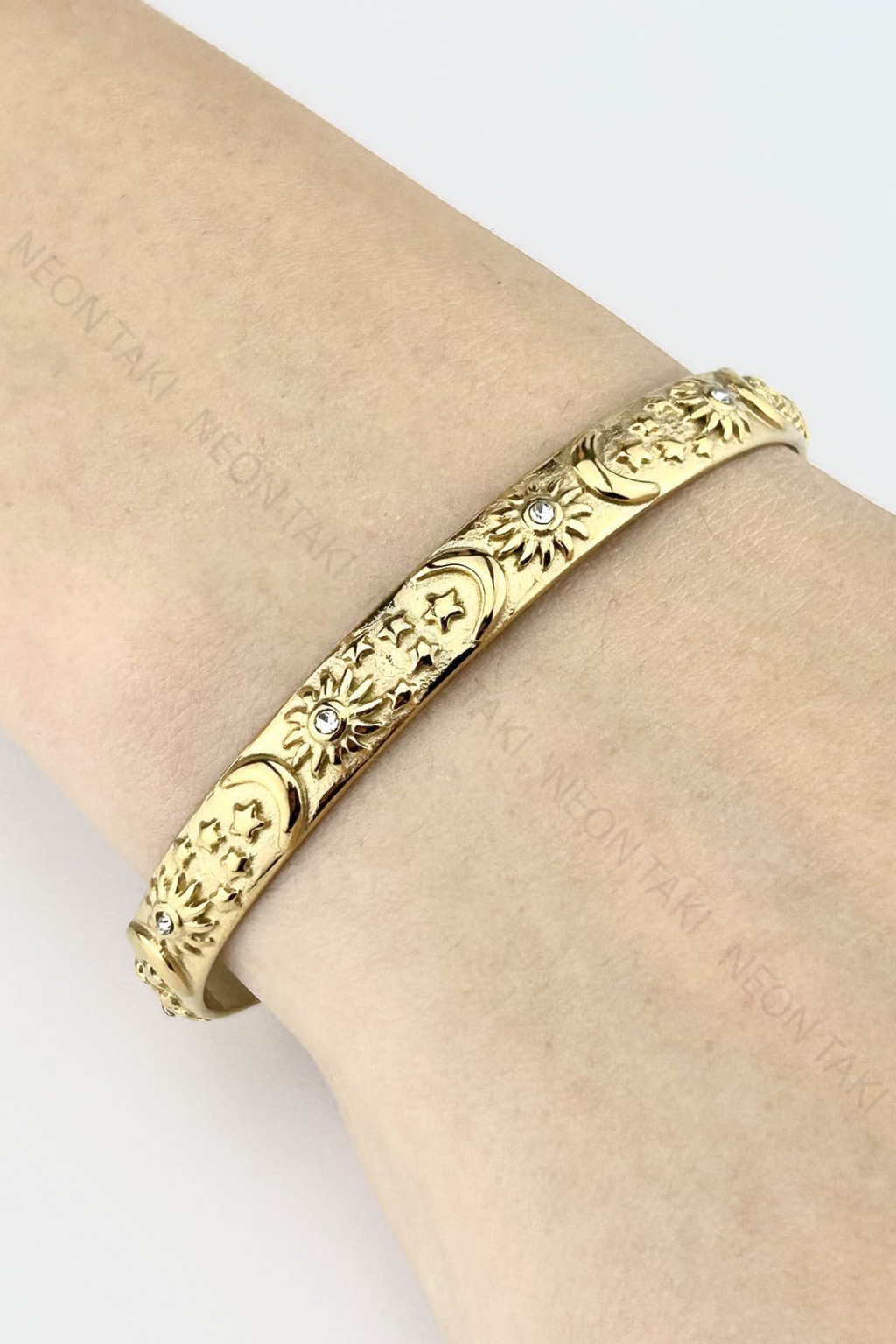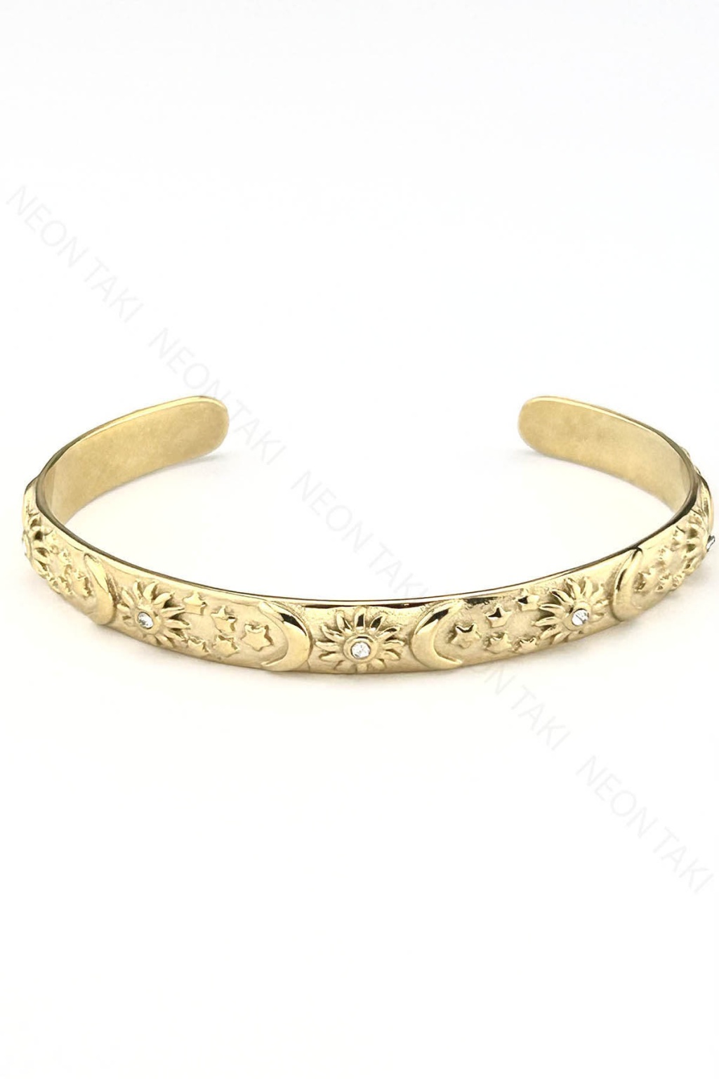 Zirkon Taşlı, Yıldız İşlemeli Paslanmaz Çelik Kelepçe 178, Altın Renk