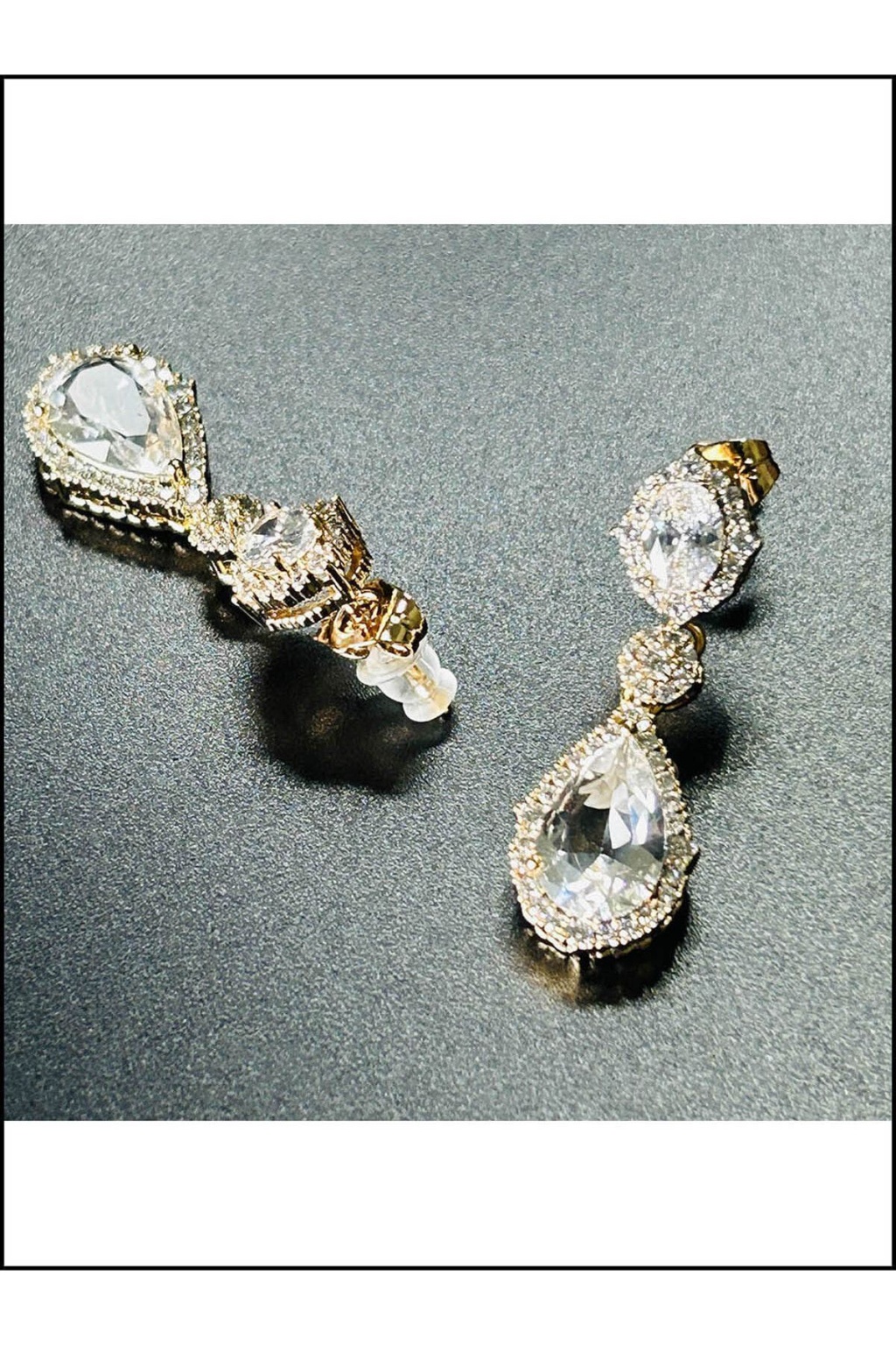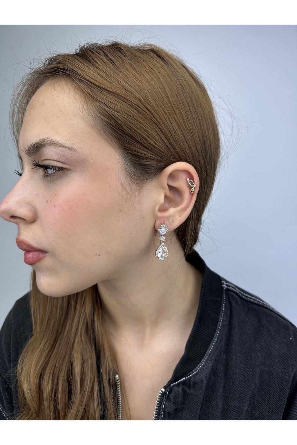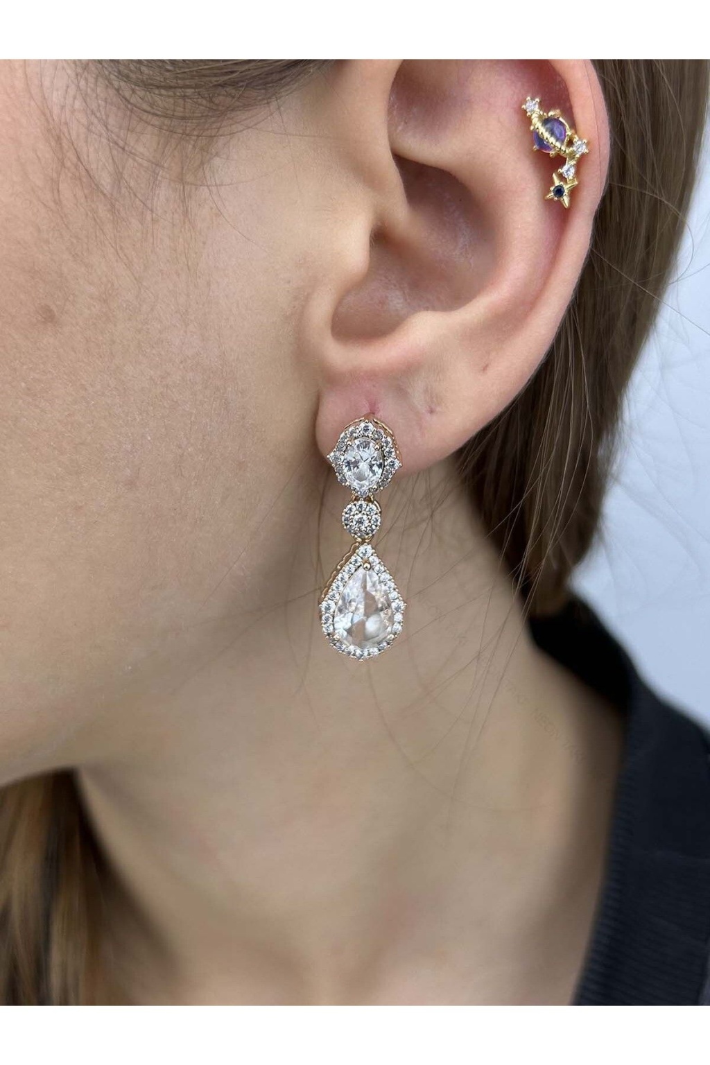 Küpe, Zirkon Taşlı, Kararmayan Paslanmaz Çelik, Sallantılı, Altın Renk, Model140
