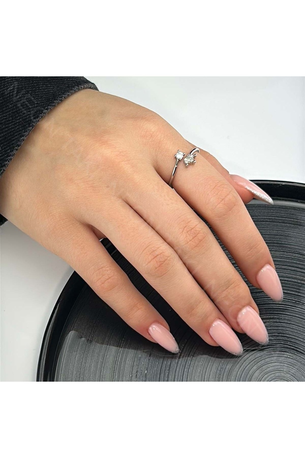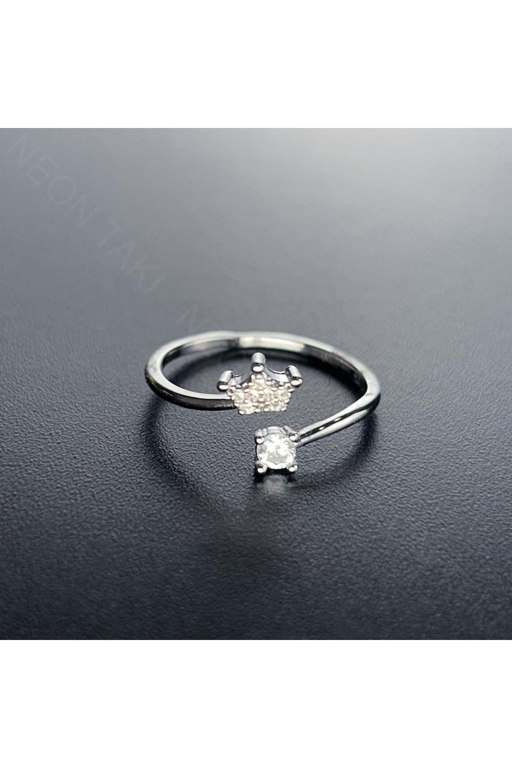 Zirkon Taşlı, Taçlı, Bijuteri Eklem Yüzüğü 124, Gümüş Renk, Ayarlanabilir