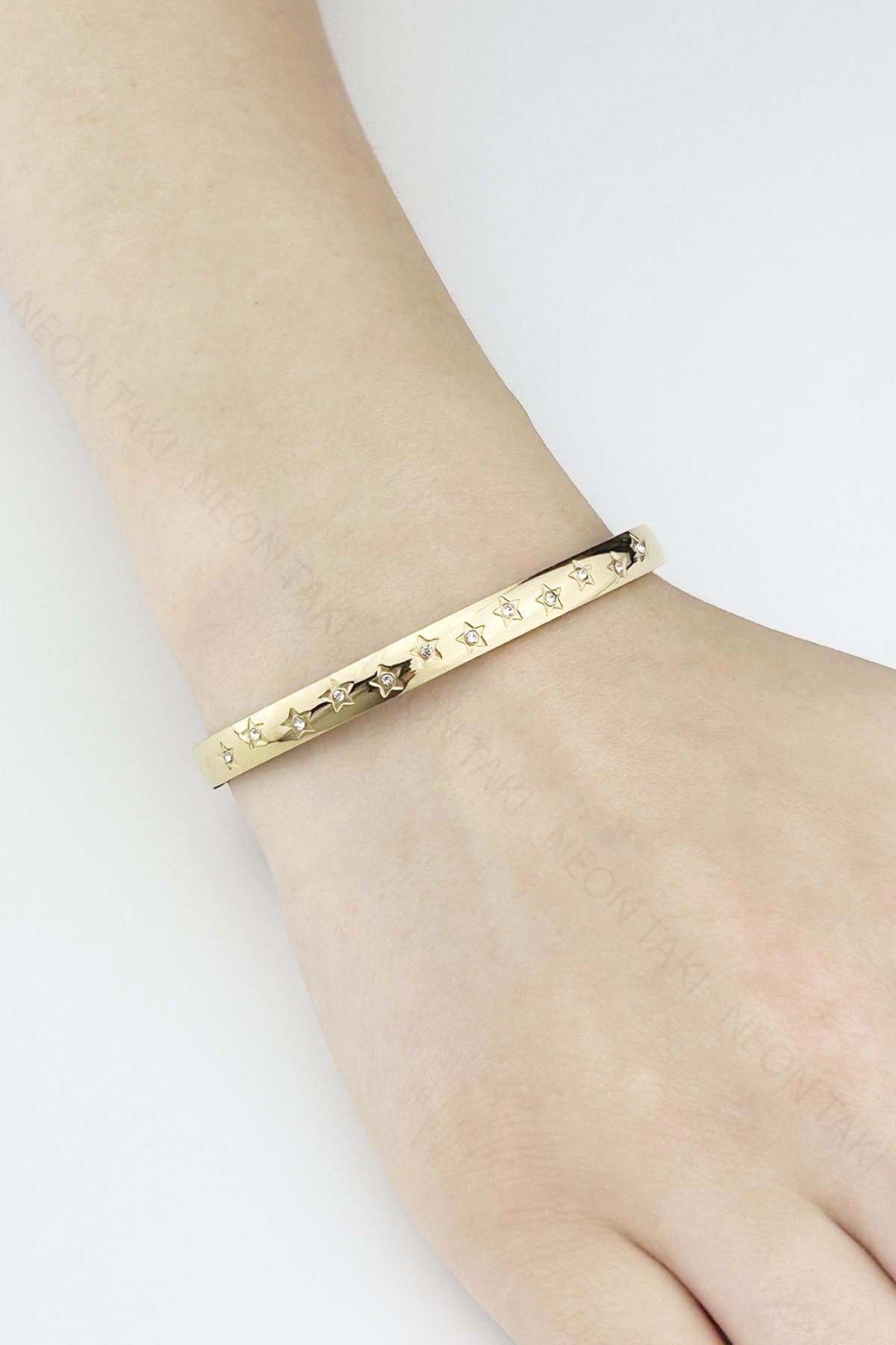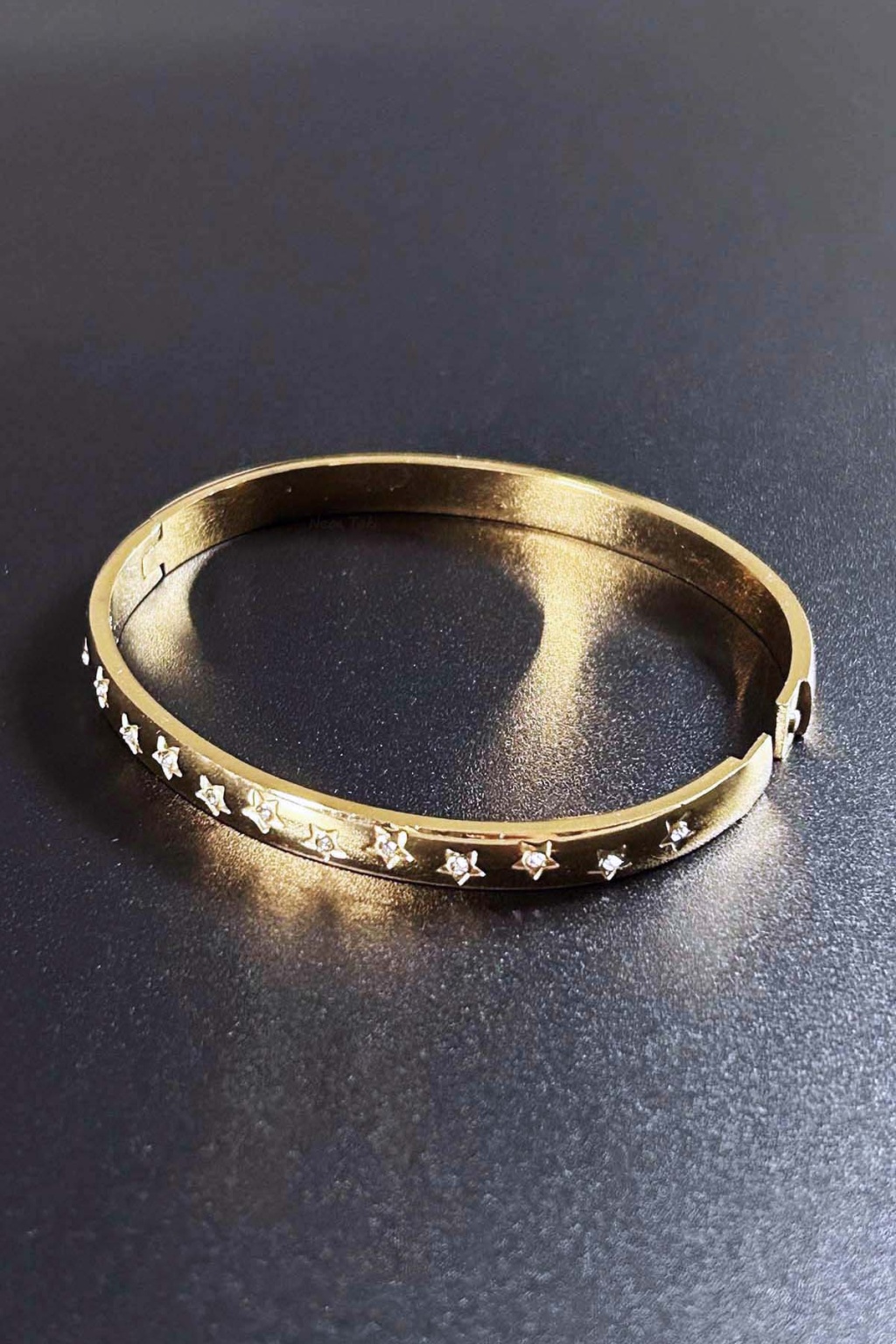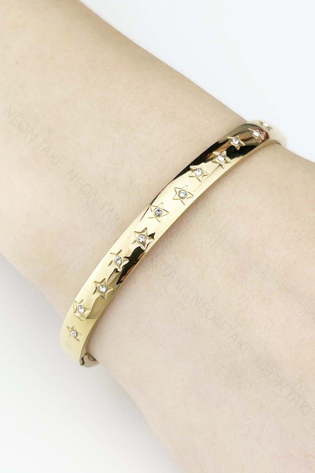 Zirkon Taşlı, Yıldız İşlemeli Paslanmaz Çelik Kelepçe 178, Altın Renk