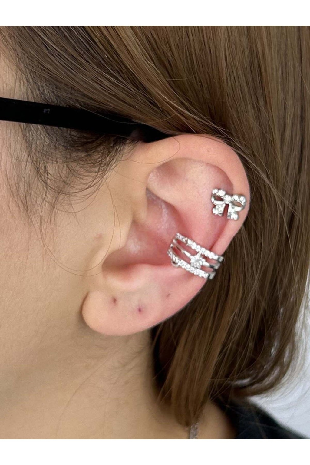 Zirkon Taşlı Ve Incili, Kulak Kıkırdak Bölgesi Bijuteri Küpe 510, Gümüş Renk