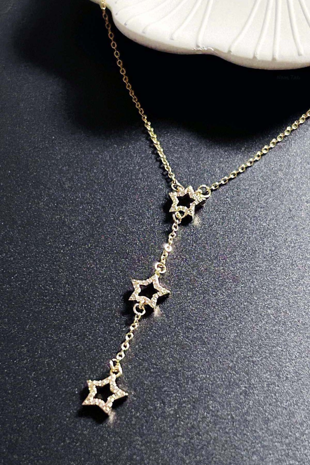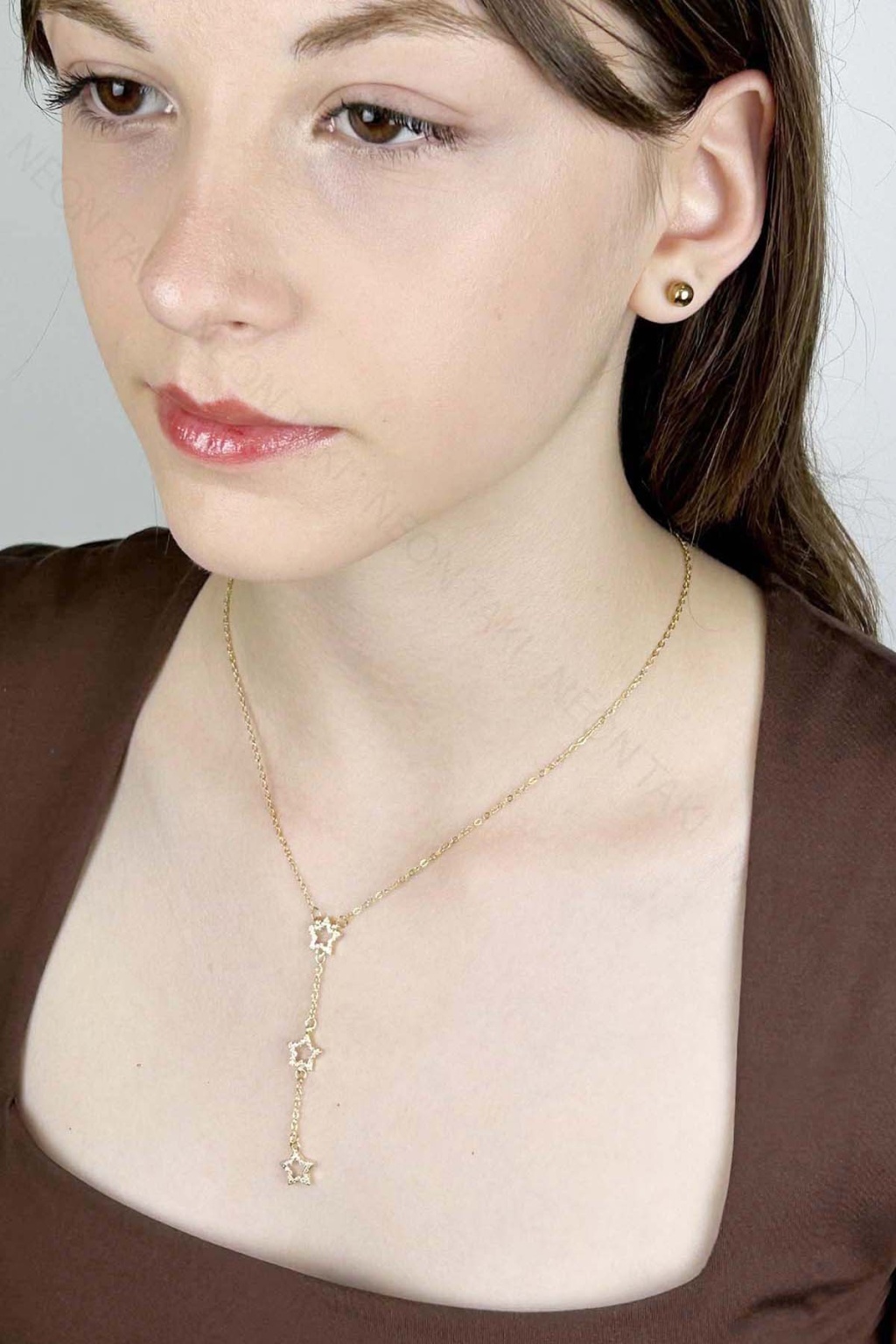 Zirkon Taşlı, Yıldızlı Y Kolye 434, Altın Rengi