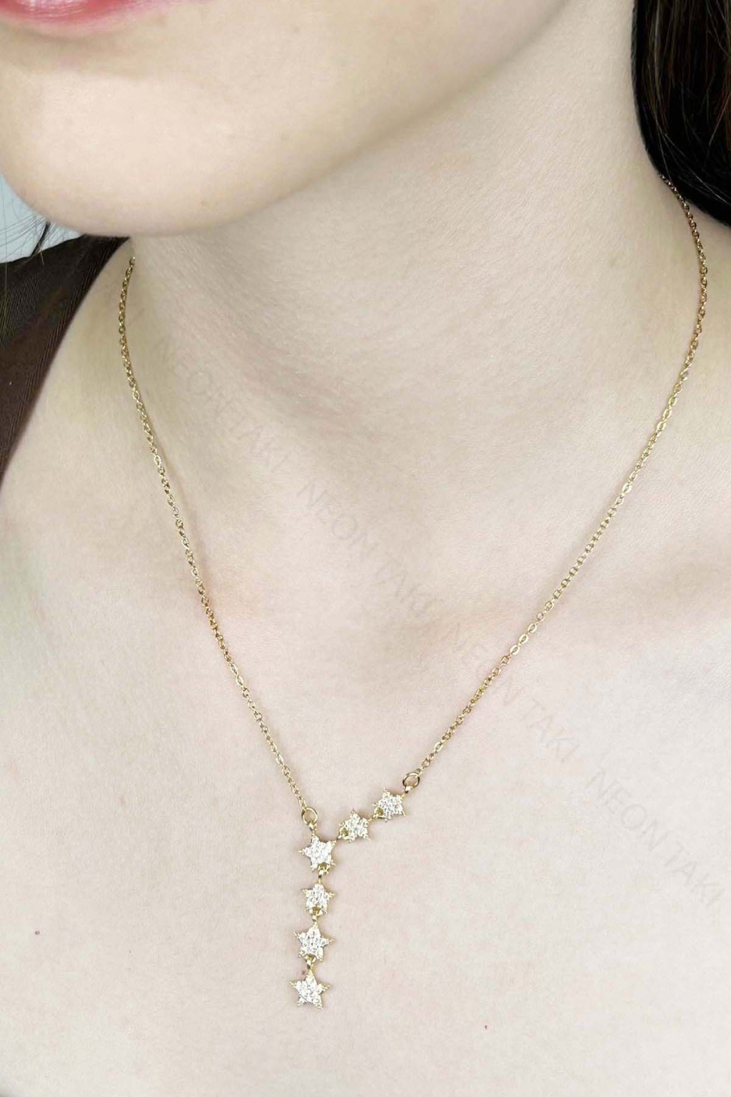 Zirkon Taşlı Yıldızlı Y kolye, Paslanmaz Çelik Kolye 407, Altın Renk