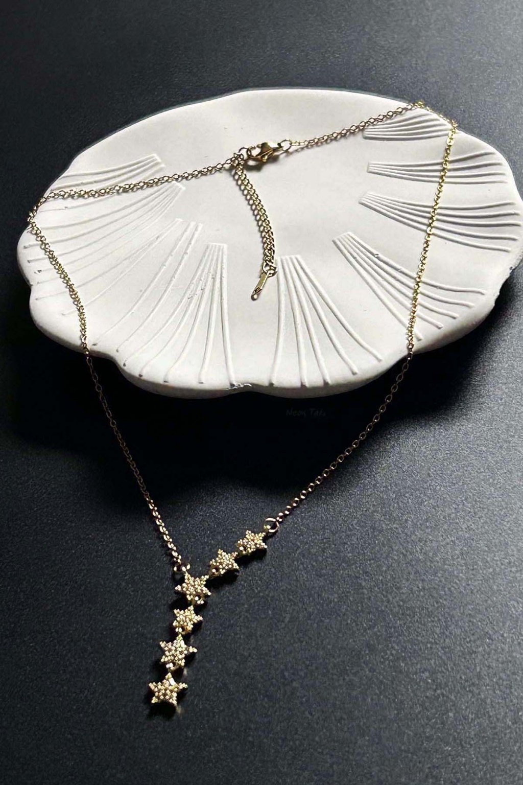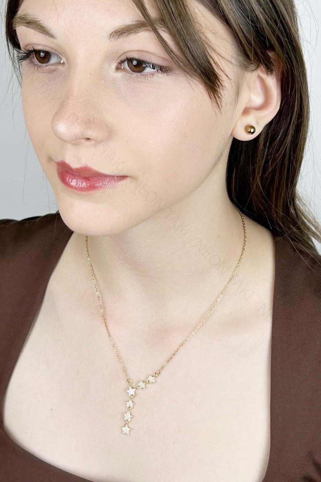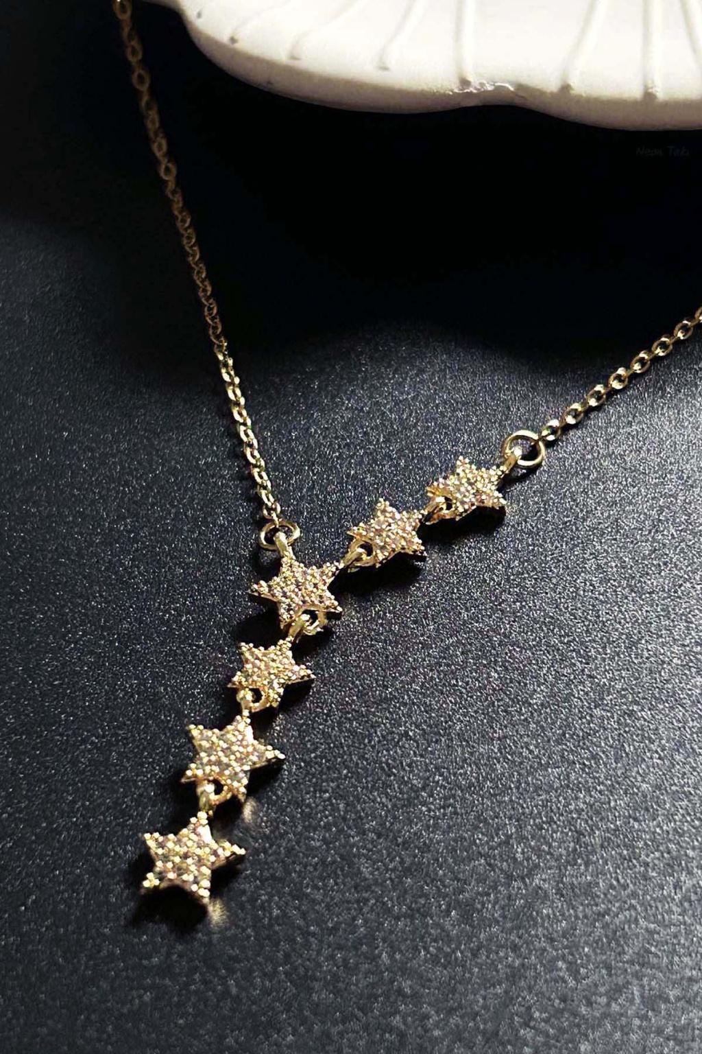 Zirkon Taşlı, Yıldızlı Y Kolye 434, Altın Rengi